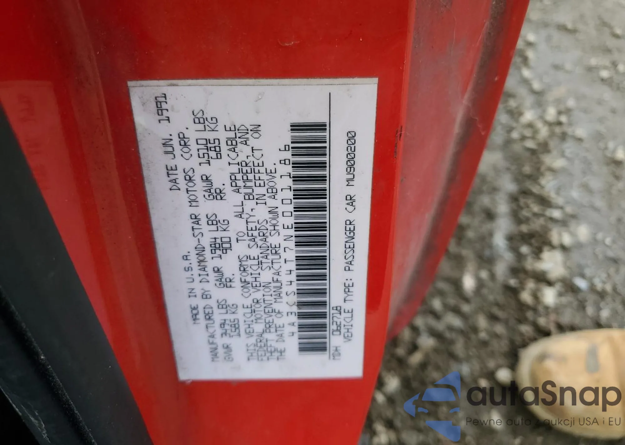 Автомобиль Mitsubishi Eclipse 1992 (VIN 4A3CS44T7NE001186) продаётся непроверенным продавцом. Рекомендуем проверить отчет Carfax и подтвердить возможность регистрации перед покупкой.