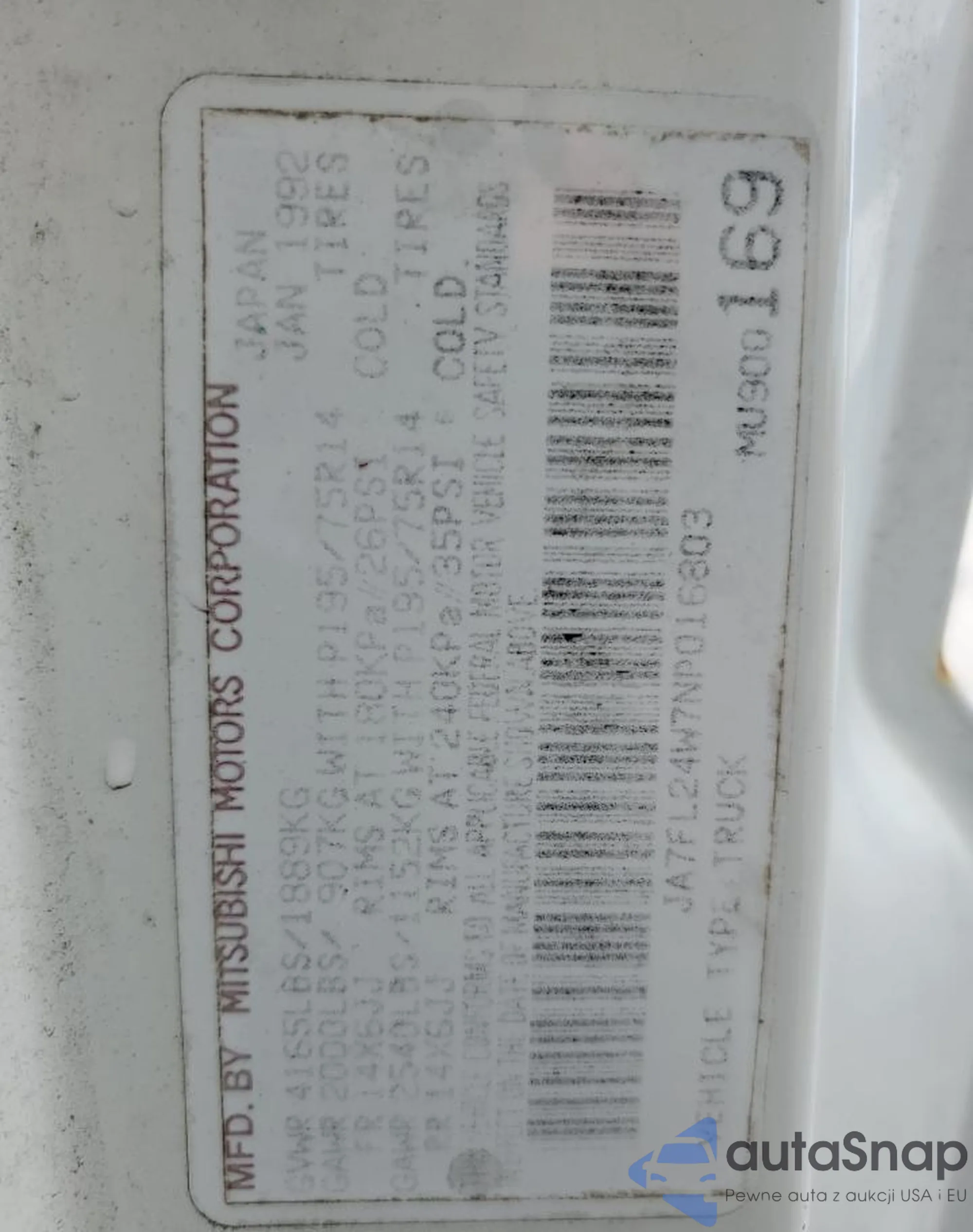 1992 Mitsubishi Mighty Max / SJA7FL24W7NP016803 COPART