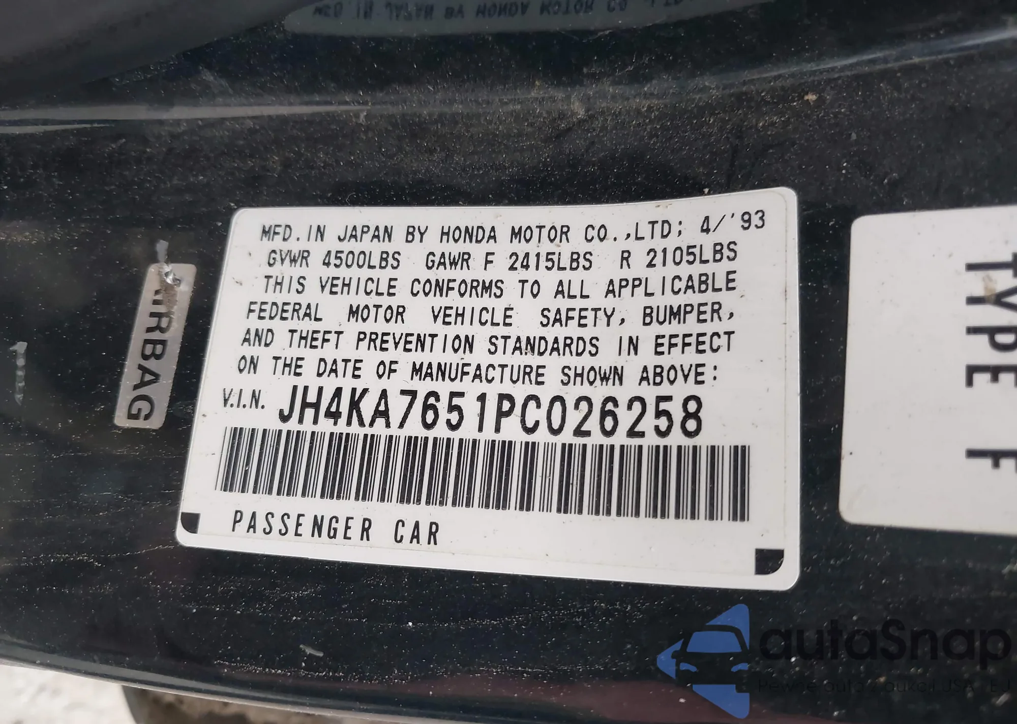 VIN: JH4KA7651PC026258