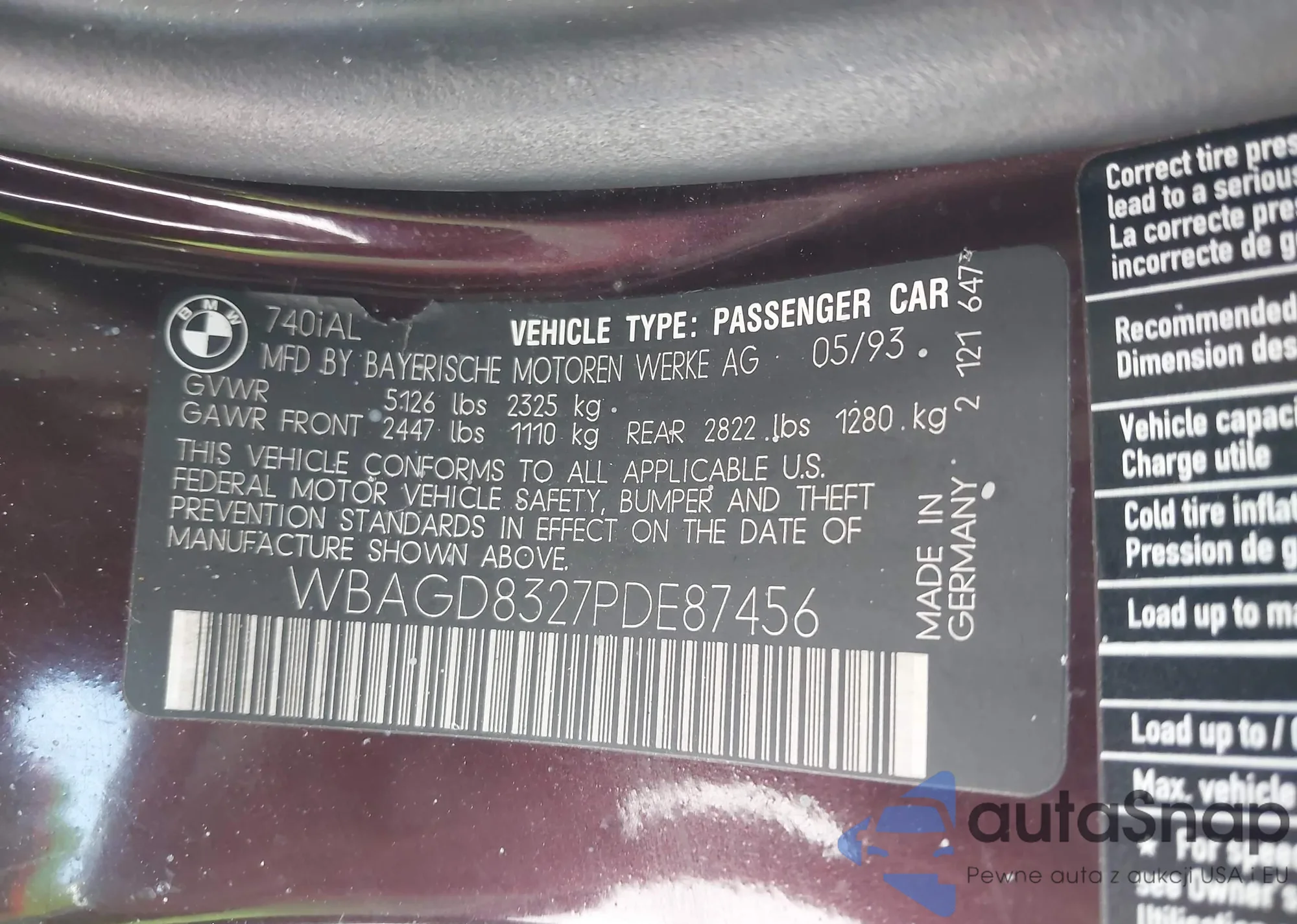 VIN: WBAGD8327PDE87456