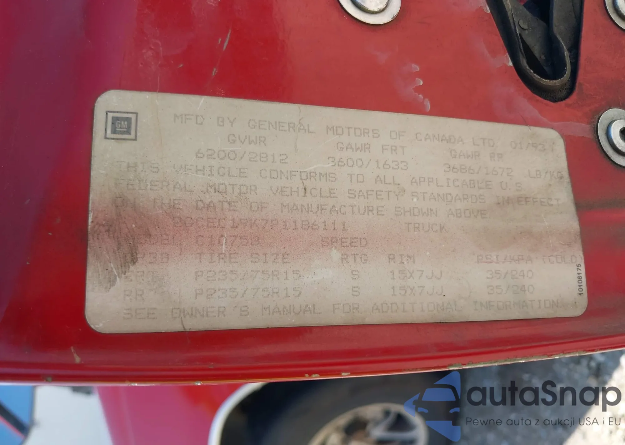 • VIN: GCEC19K7P11861111