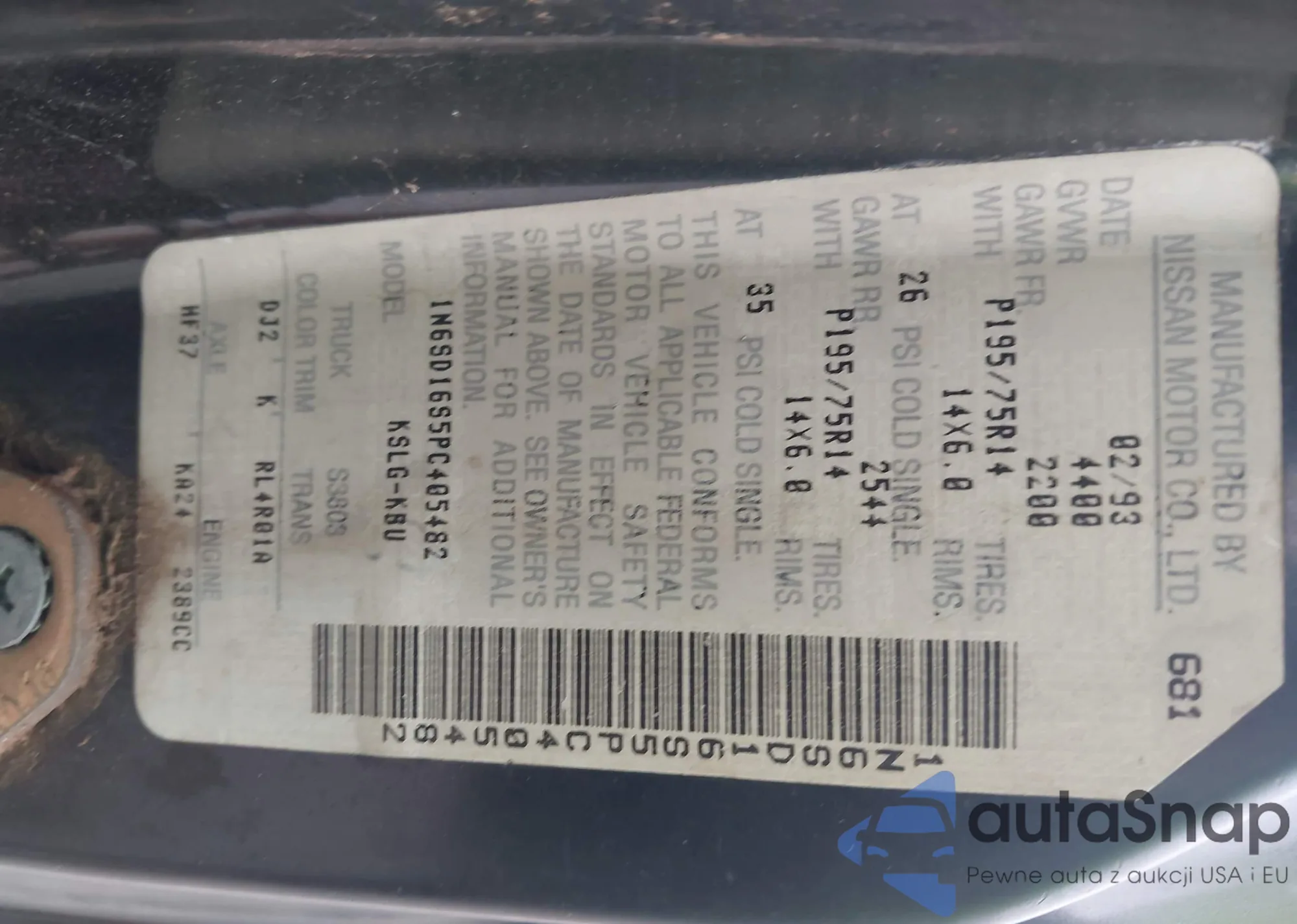 Nissan Titan 1993 – История автомобиля (продан на IAAI)