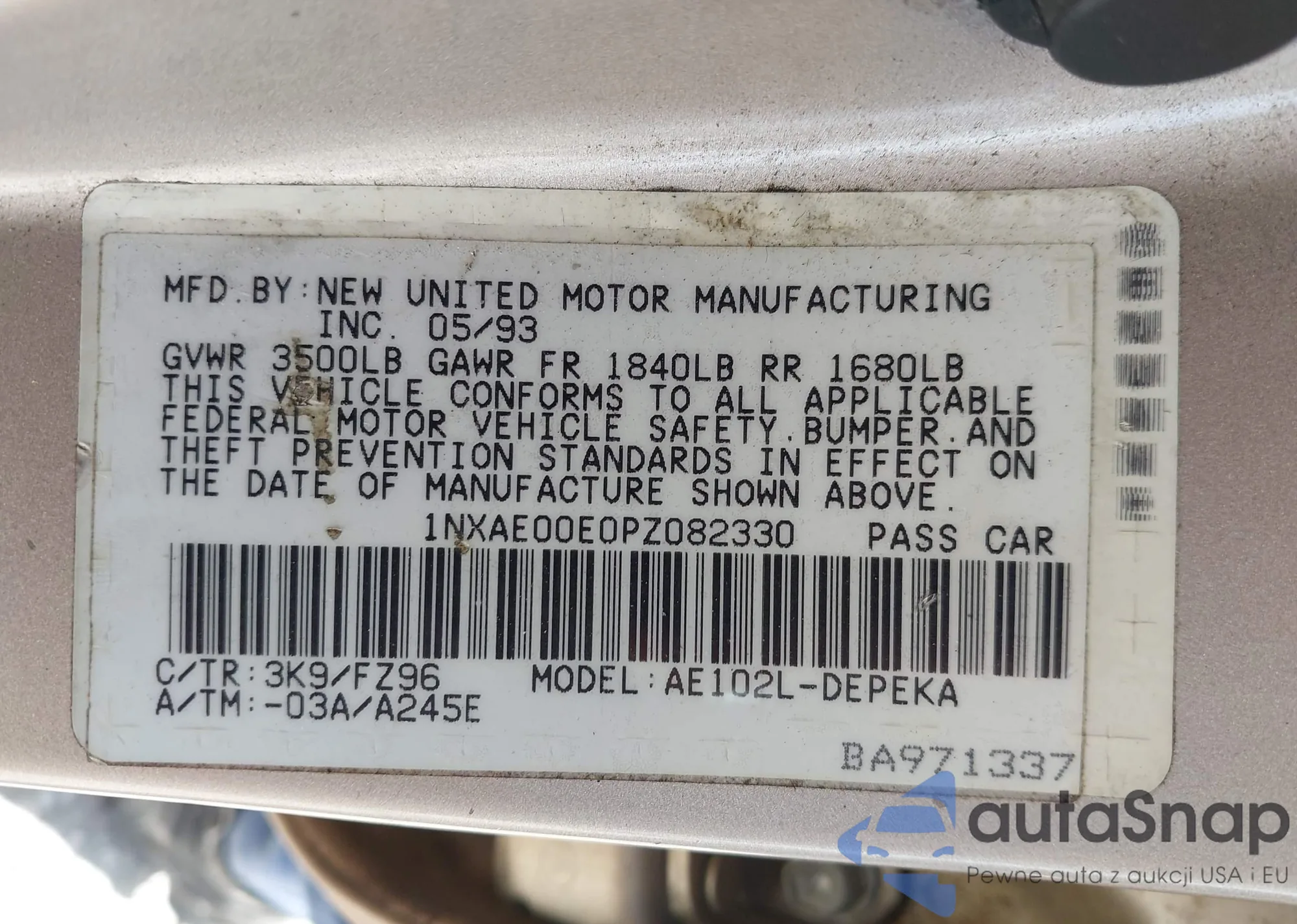 VIN: 1NXAE00E0PZ082330