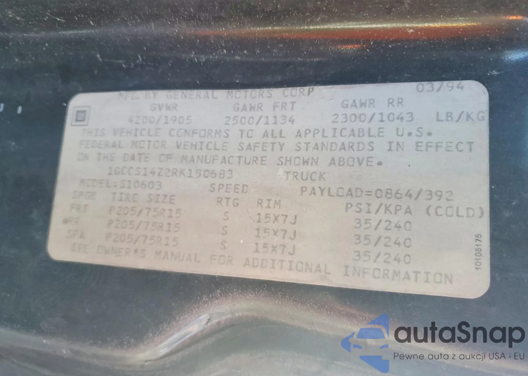 Автомобиль Chevrolet S-10 Pickup 1994 (VIN 1GCCS14Z2RK150683) продаётся непроверенным продавцом. Рекомендуем проверить отчет Carfax и подтвердить возможность регистрации перед покупкой.