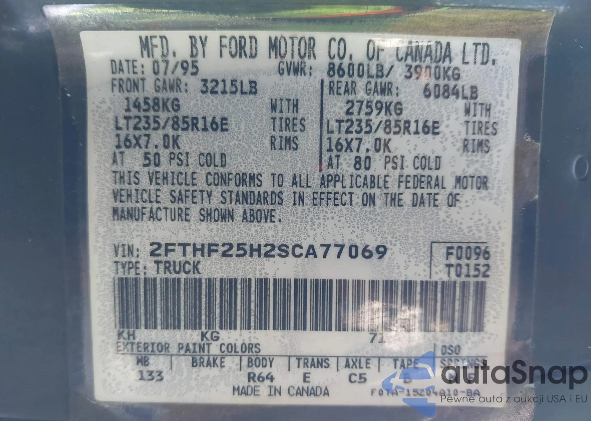 VIN: 2FTHF25H2SCA77069