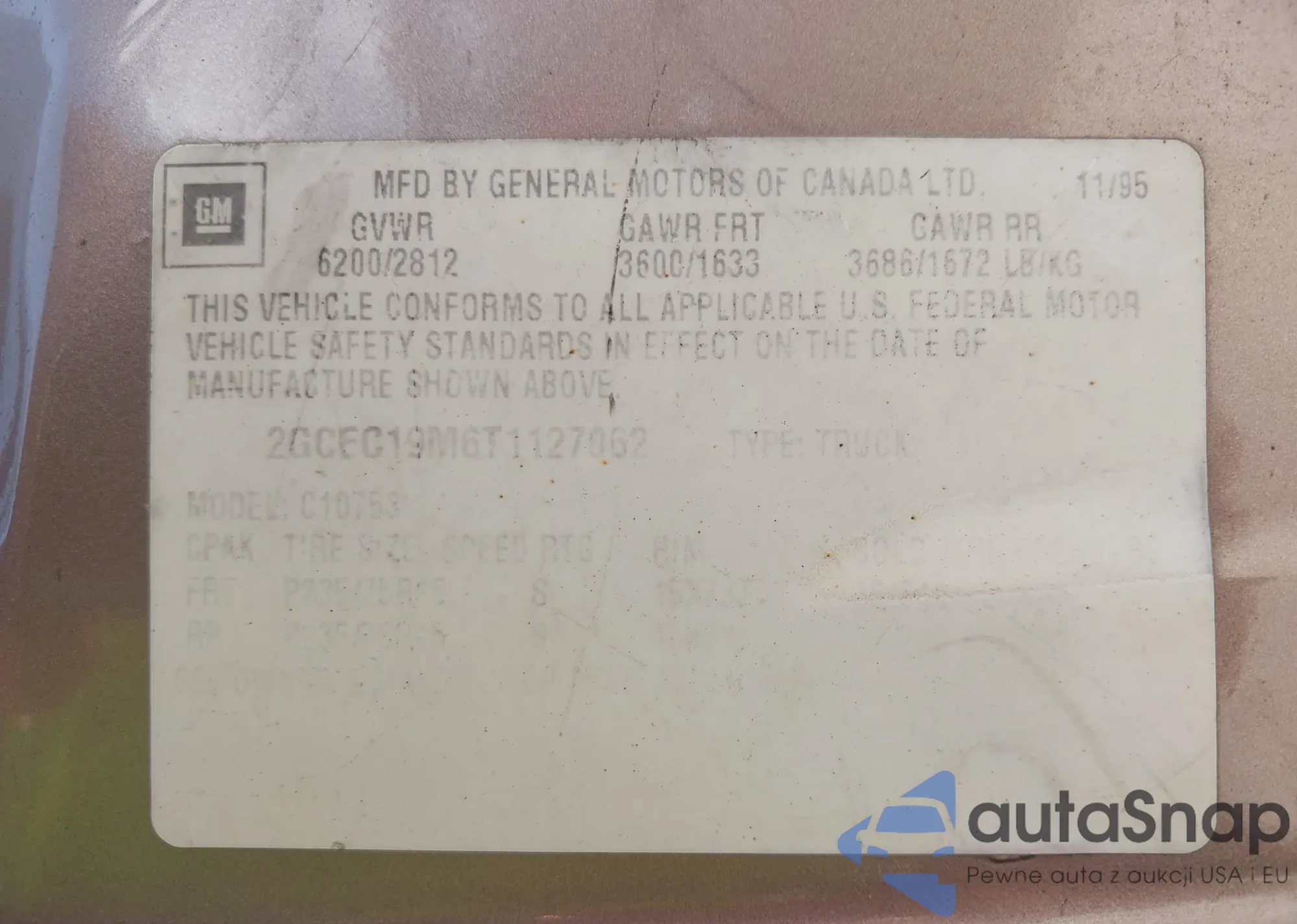• VIN: 2GCEC19M6T1127062