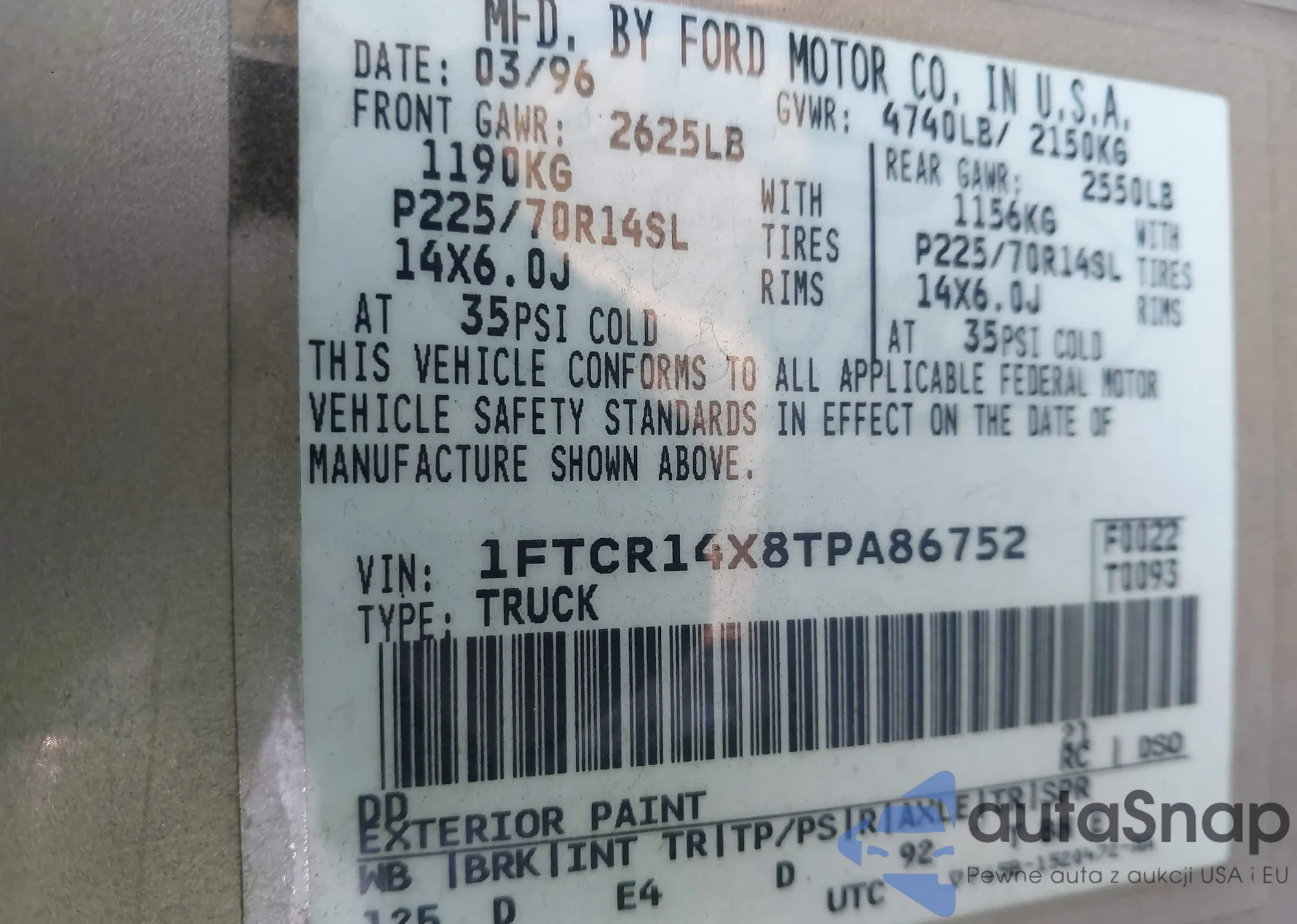 VIN: 1FTCR14X8TPA86752