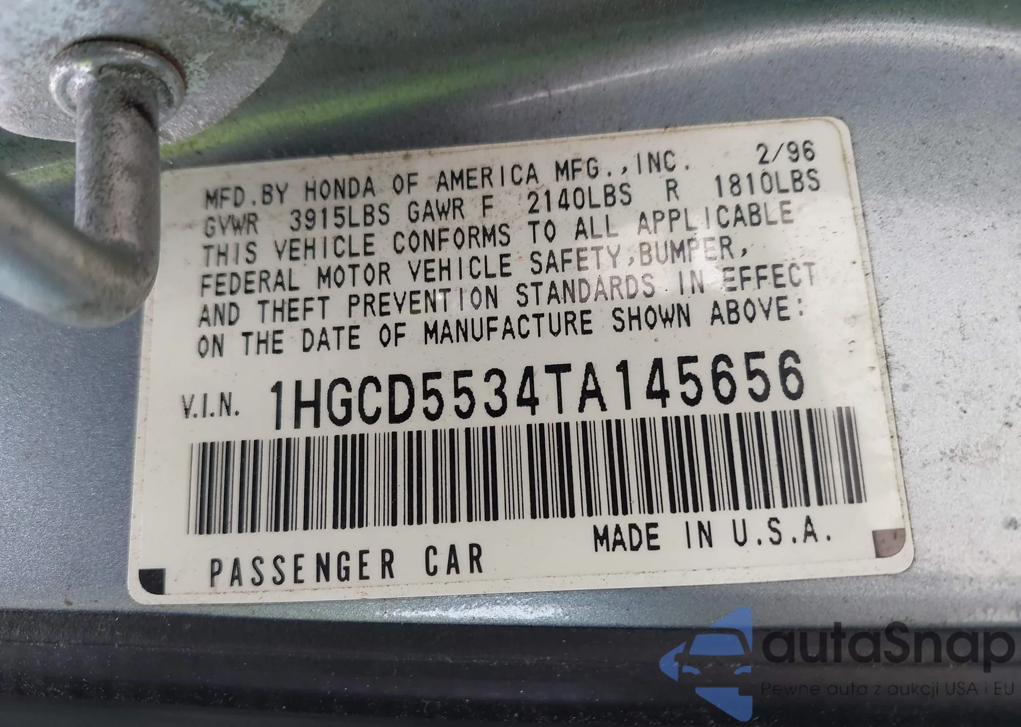 VIN: 1HGCD5534TA145656