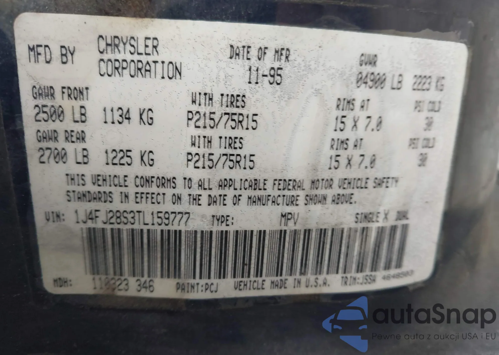 VIN: 1J4FJ28S3TL159777