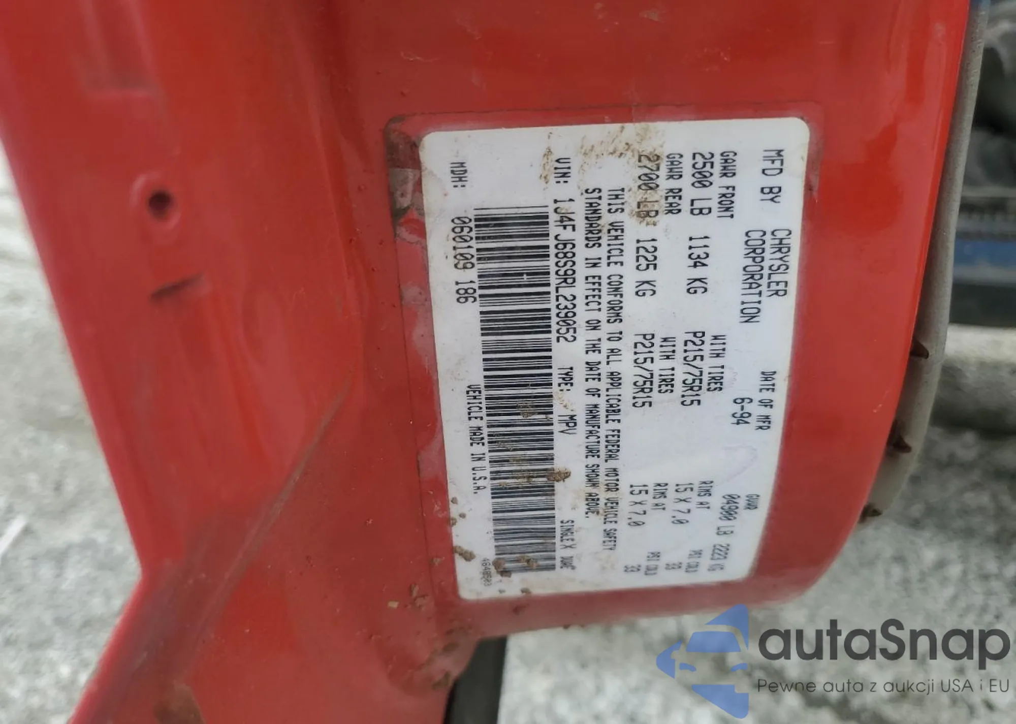 Jeep Cherokee 1996 – История автомобиля (продан на COPART)