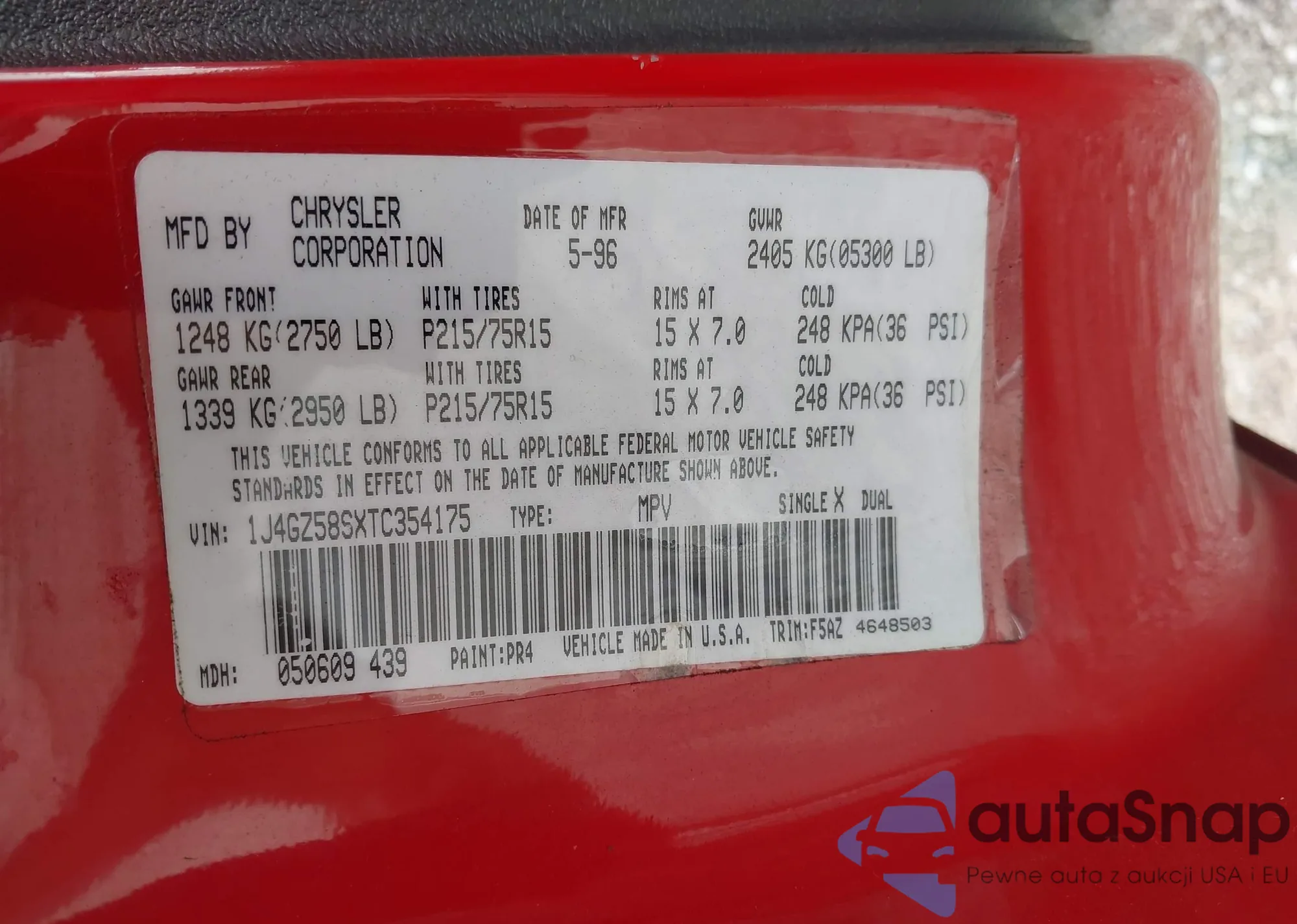 VIN: 1J4GZ58SXTC354175