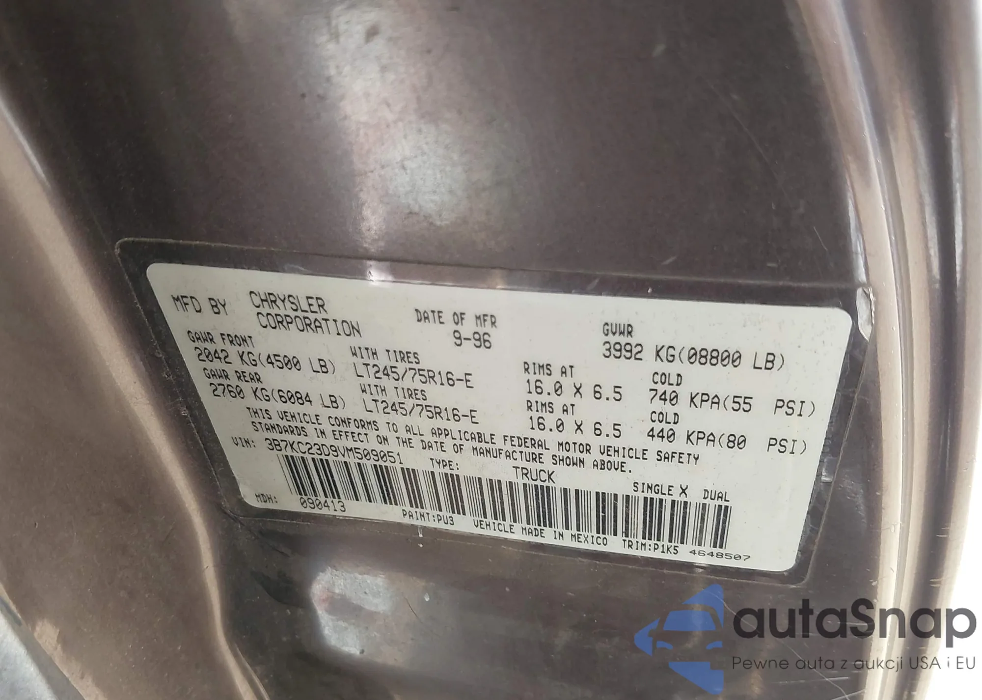 VIN: 3B7KC23D9VM509051