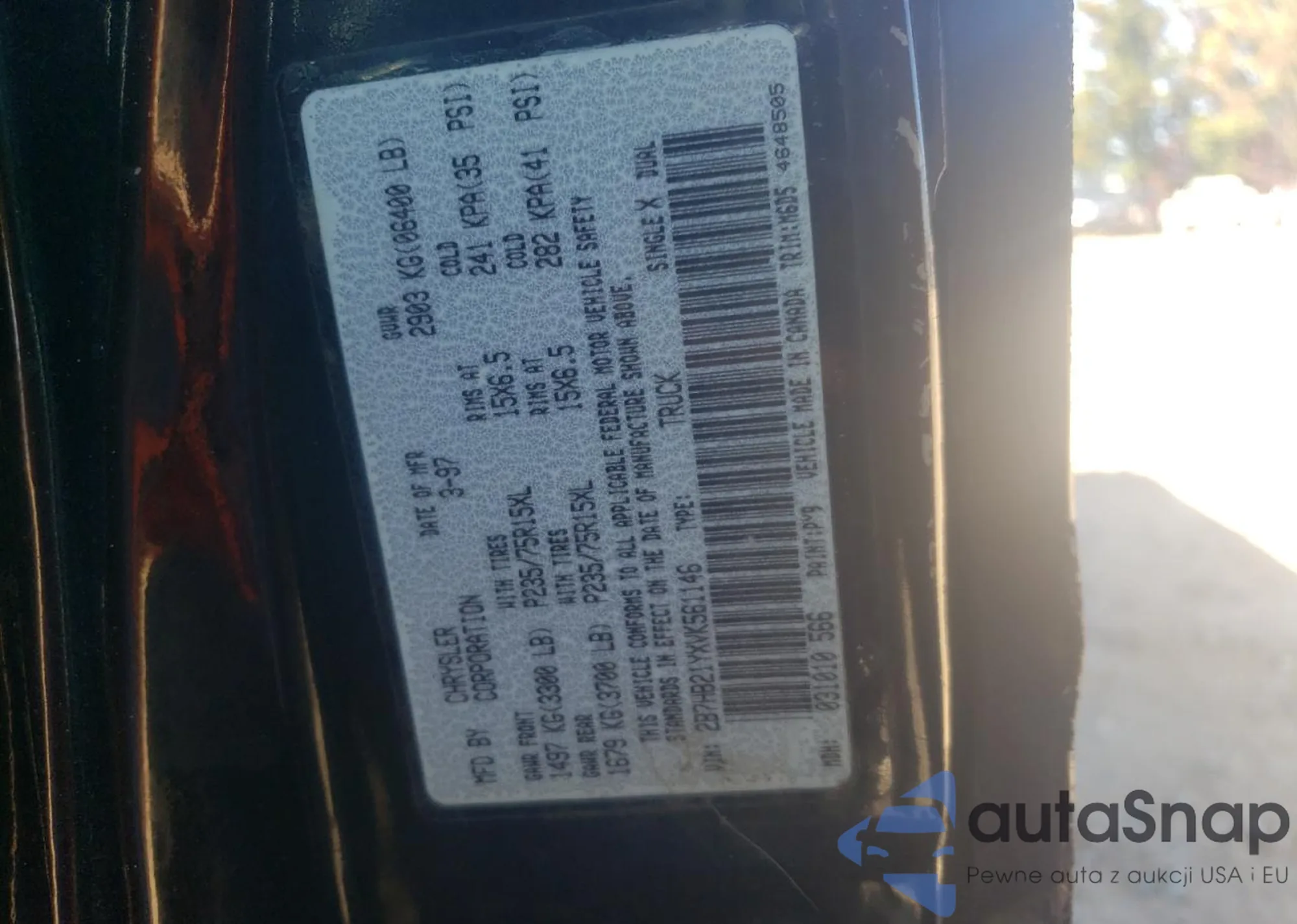 VIN: 2B7HB21YXVK561146
