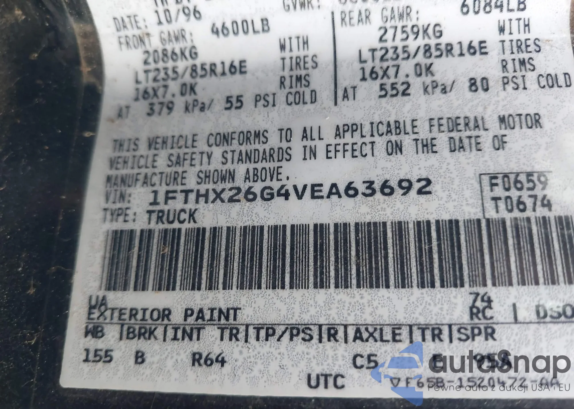 VIN: 1FTHX26G4VEA63692