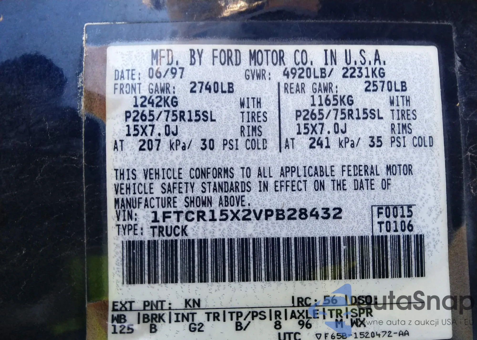 VIN: 1FTCR15X2VPB28432