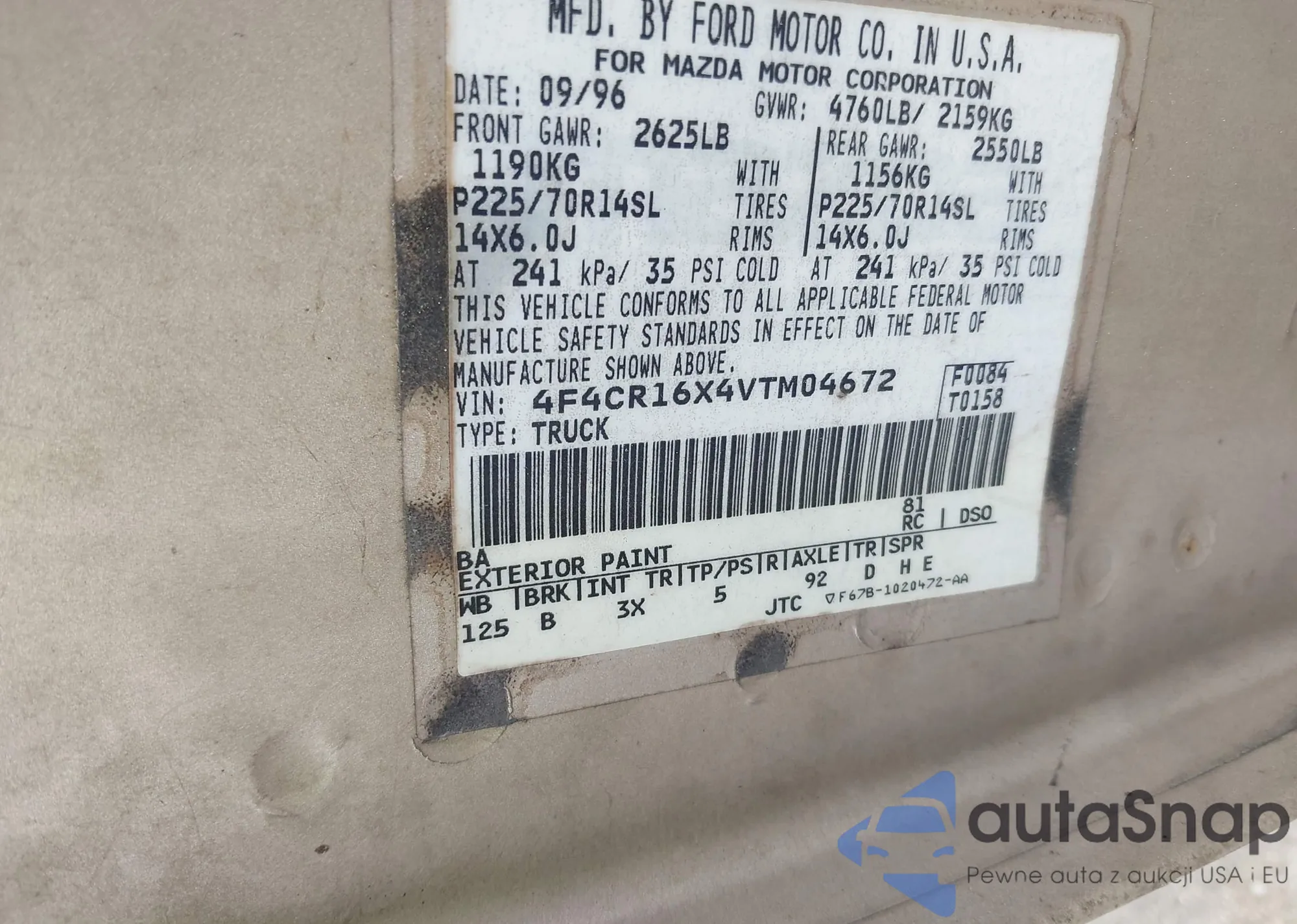 VIN: 4F4CR16X4VTM04672