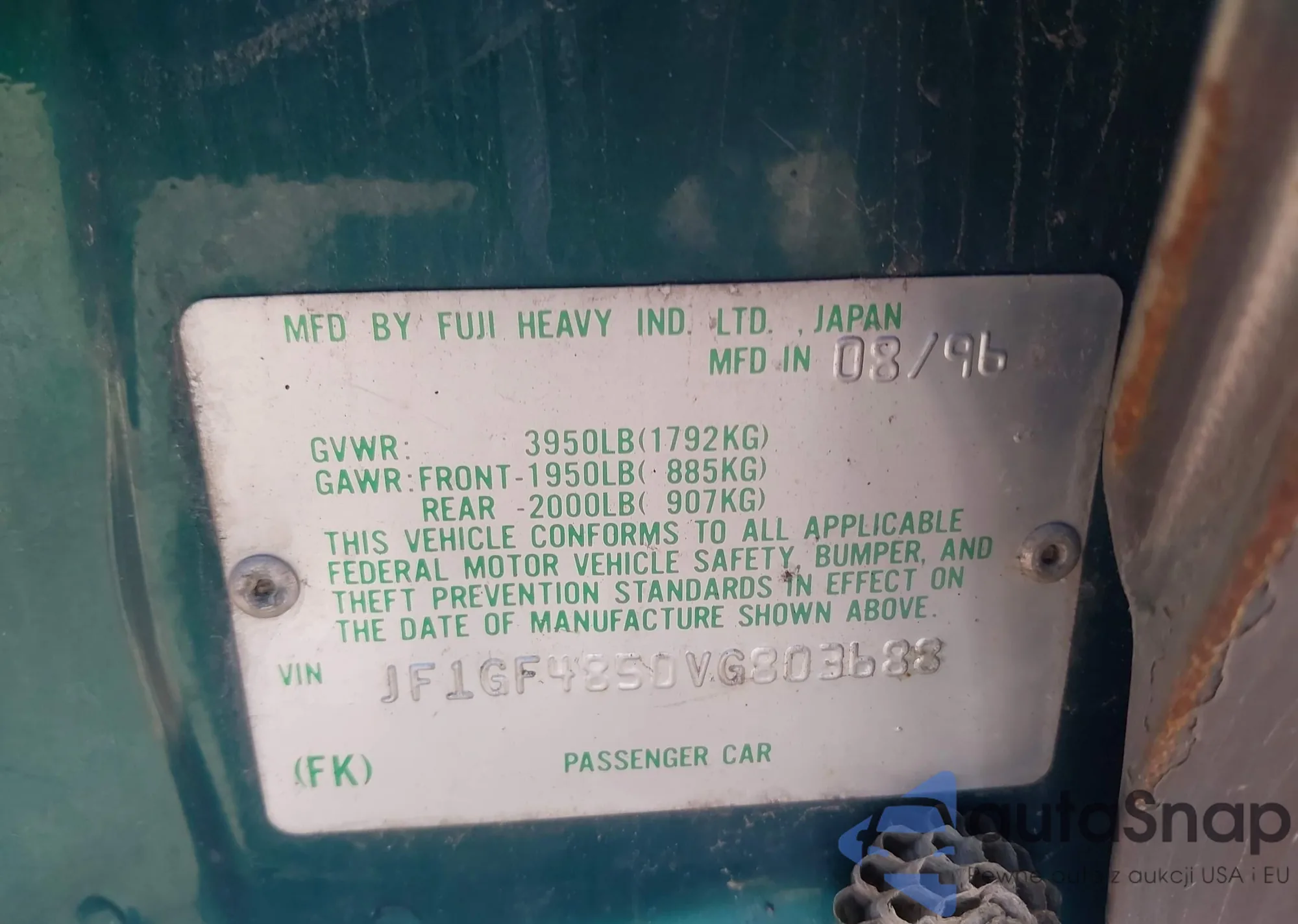 Автомобиль Subaru Impreza 1997 (VIN JF1GF4850VG803688) имеет документы, препятствующие регистрации. Могут возникнуть сложности при экспорте и регистрации. Обратитесь к экспертам AutaSnap для поиска альтернатив.