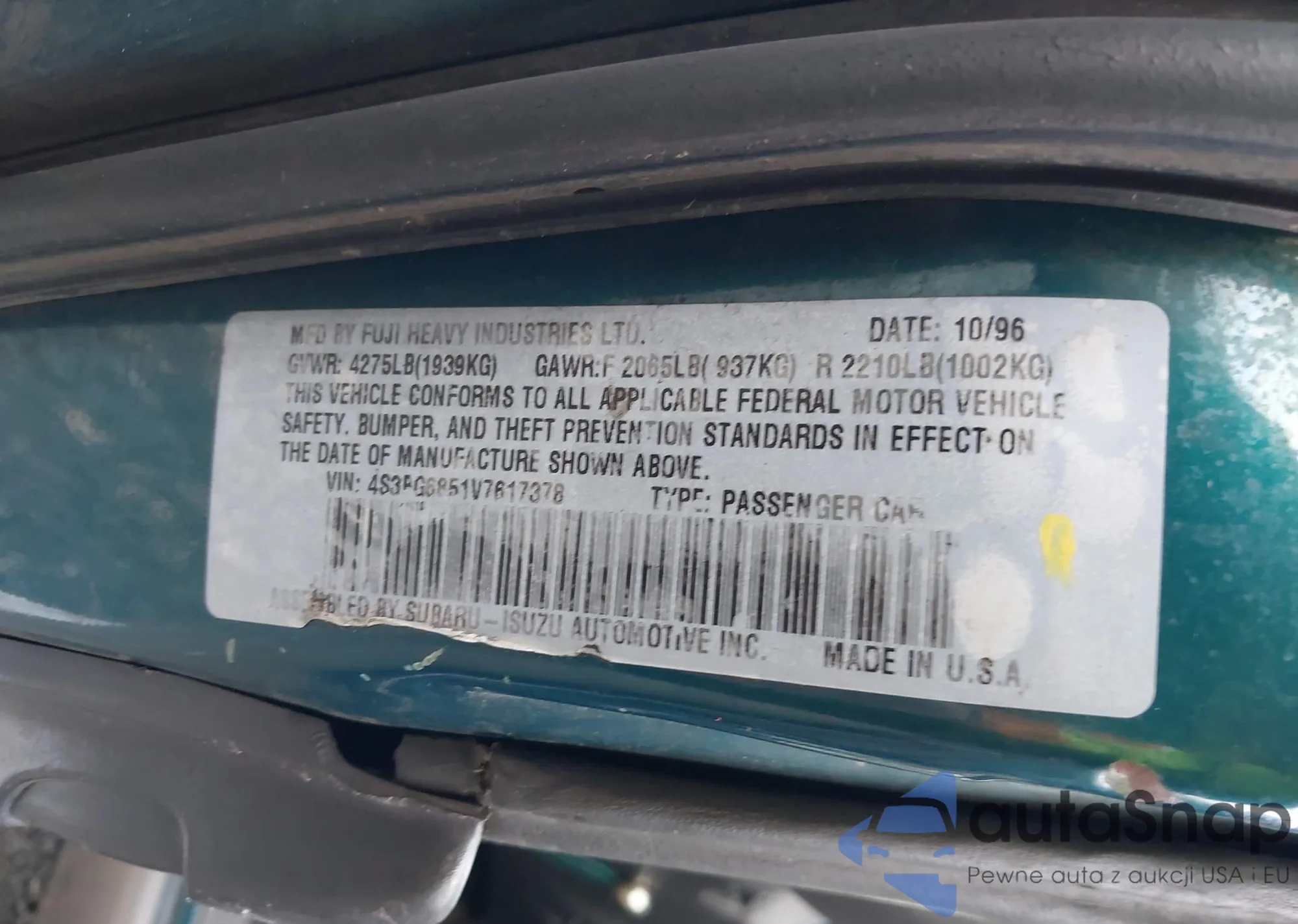 Автомобиль Subaru Legacy 1997 (VIN 4S3BG6851V7617378) продаётся непроверенным продавцом. Рекомендуем проверить отчет Carfax и подтвердить возможность регистрации перед покупкой.