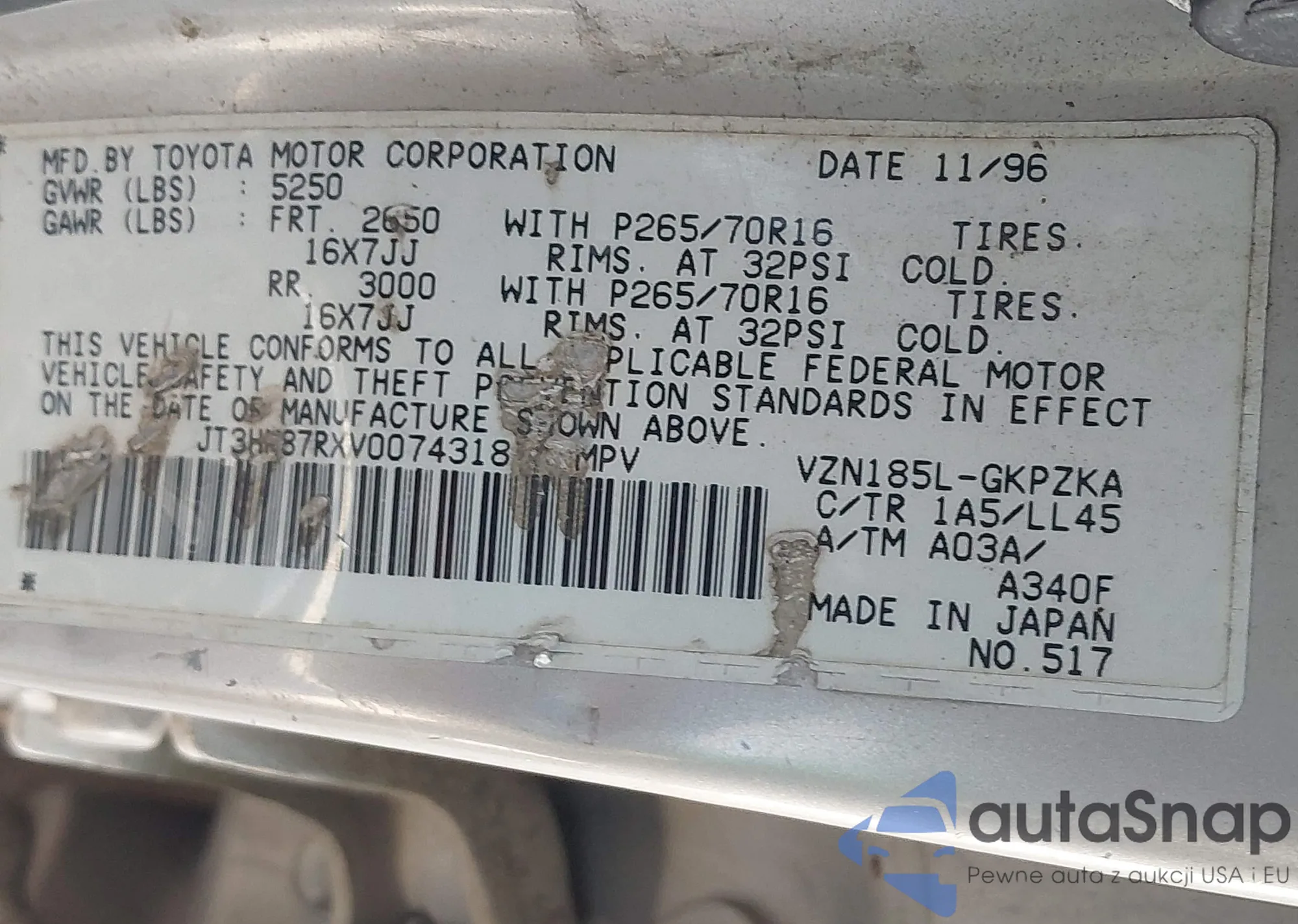 • VIN: JT3HN87RXV0074318