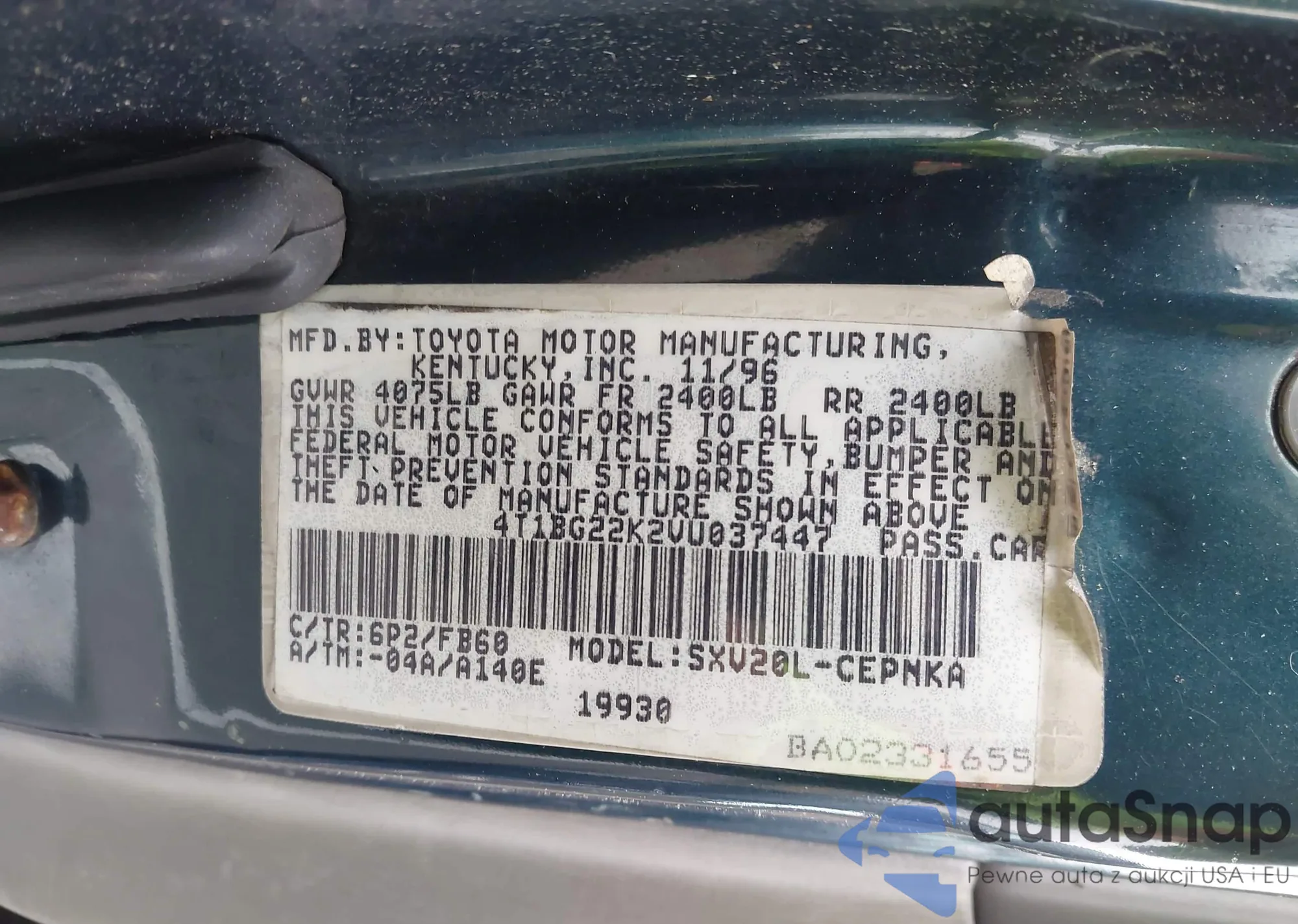 VIN: 4T1BG22K2VU037447