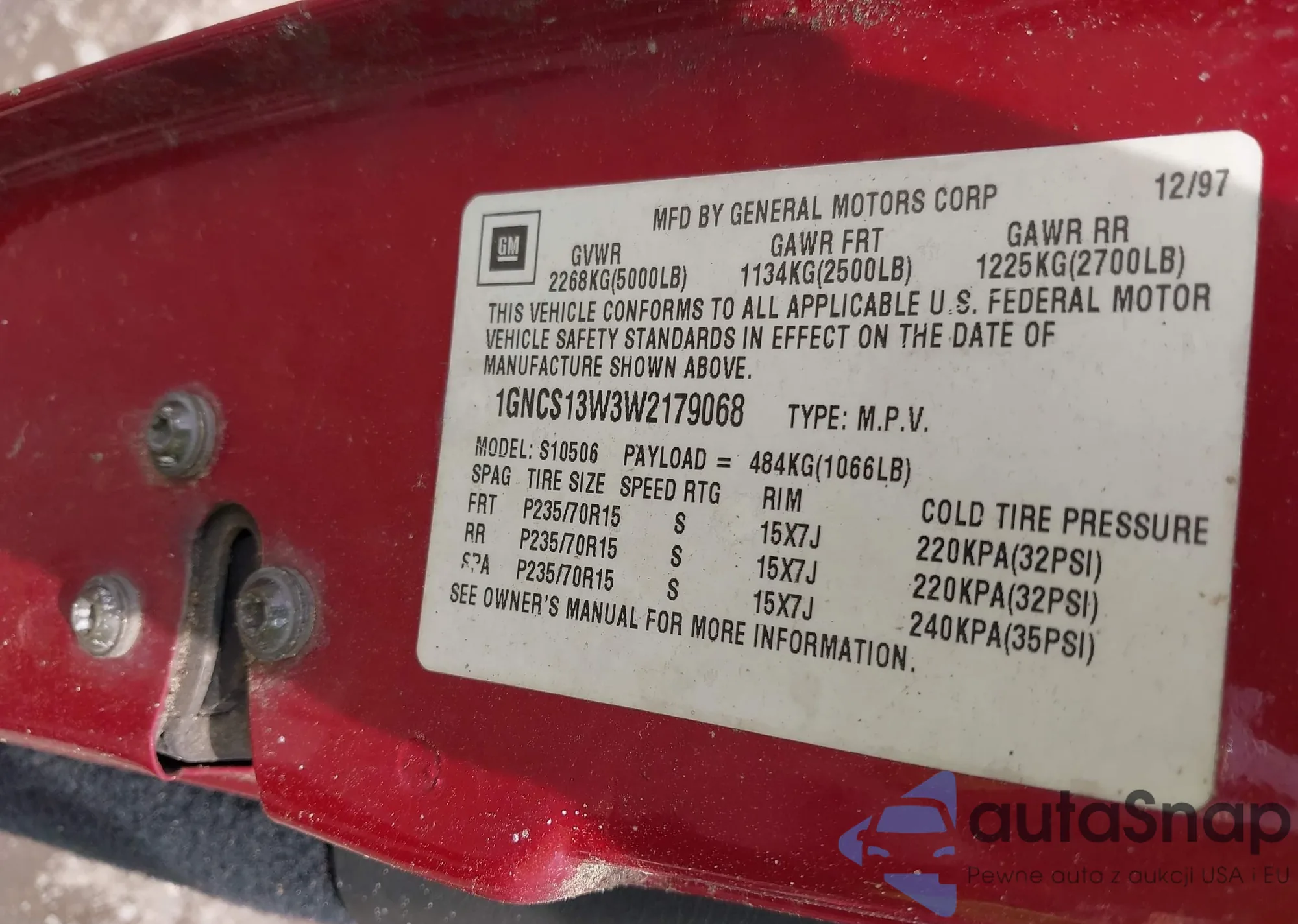 VIN: 1GNCS13W3W2179068