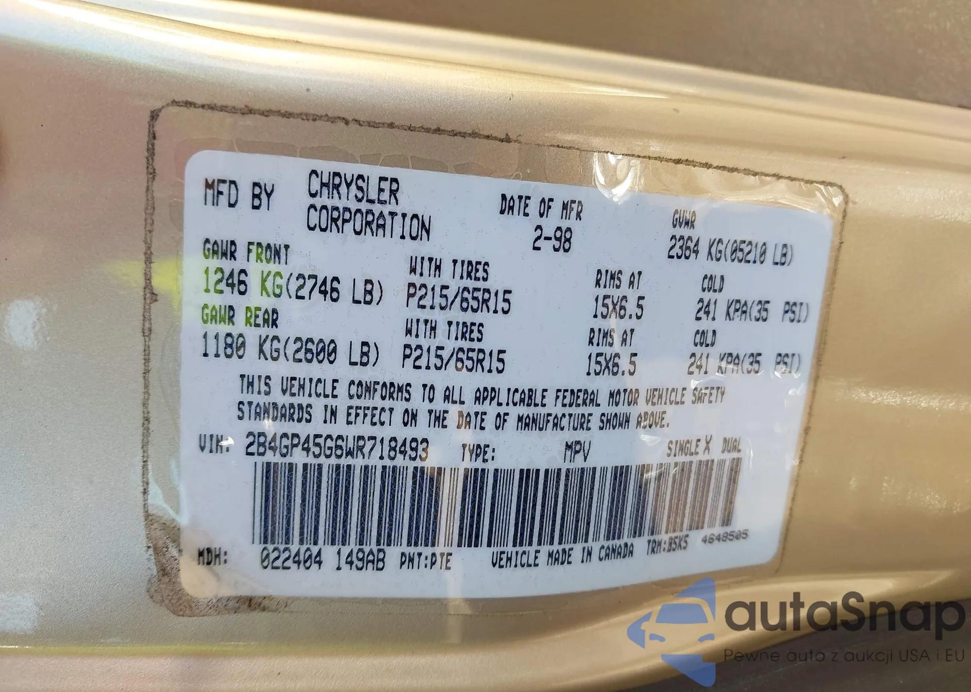 VIN: 2B4GP45G6WR718493