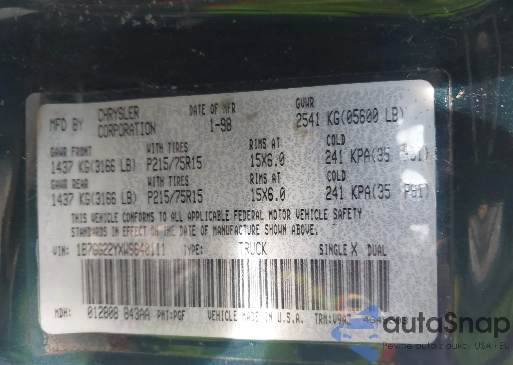 VIN: 1B7GG22YXWS640111