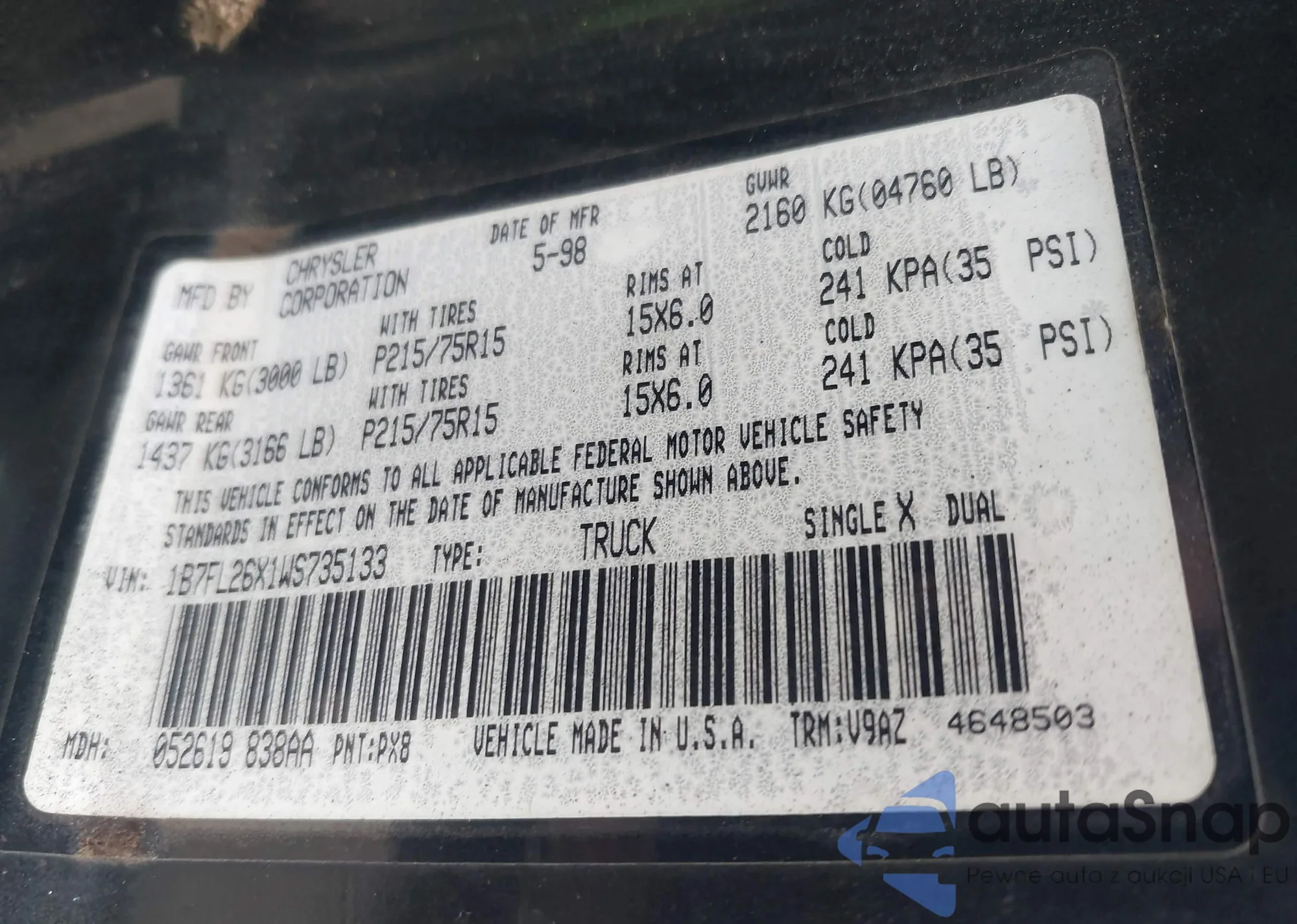 VIN: 1B7FL26X1WS735133