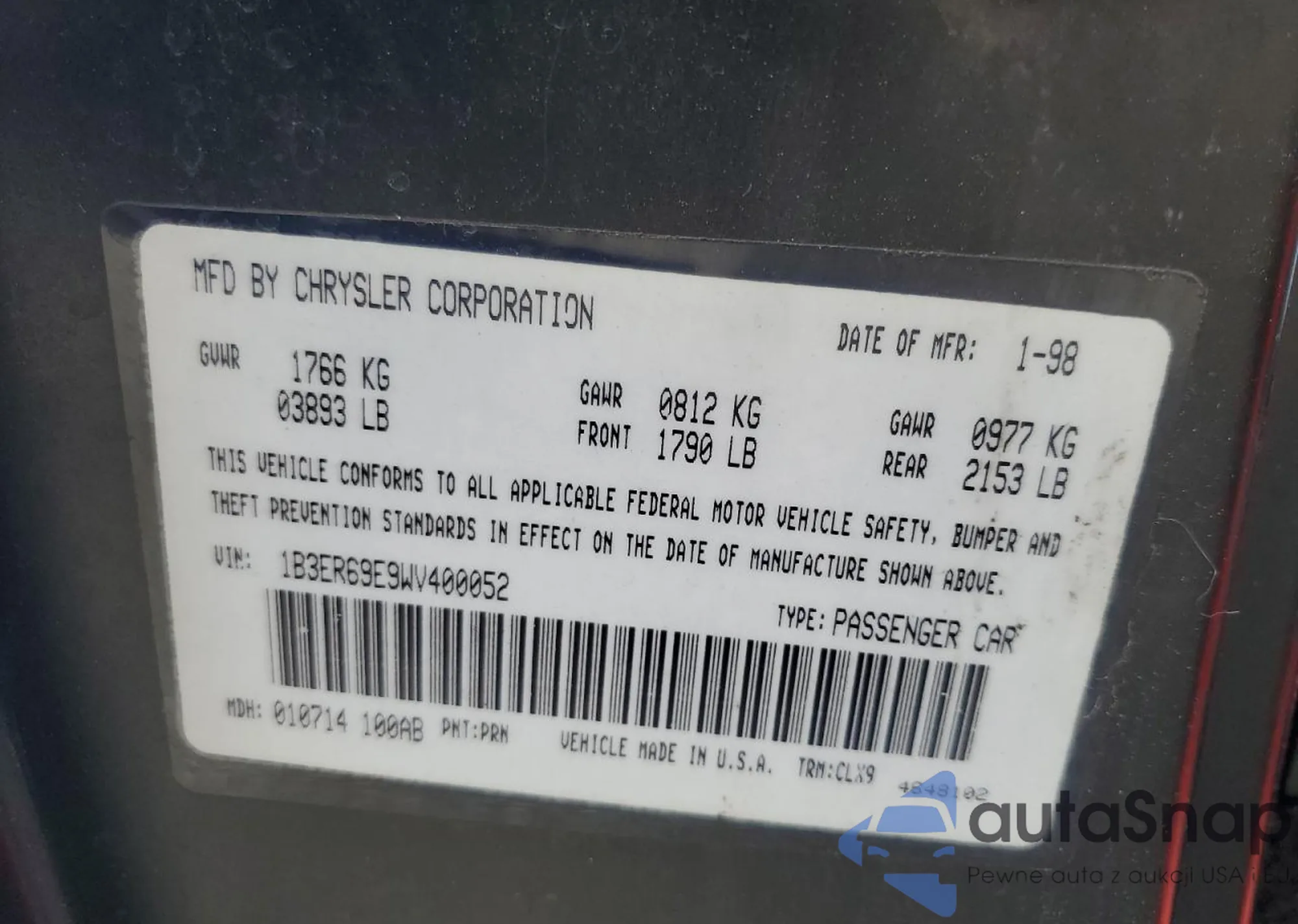 VIN: 1B3ER69E9WV400052