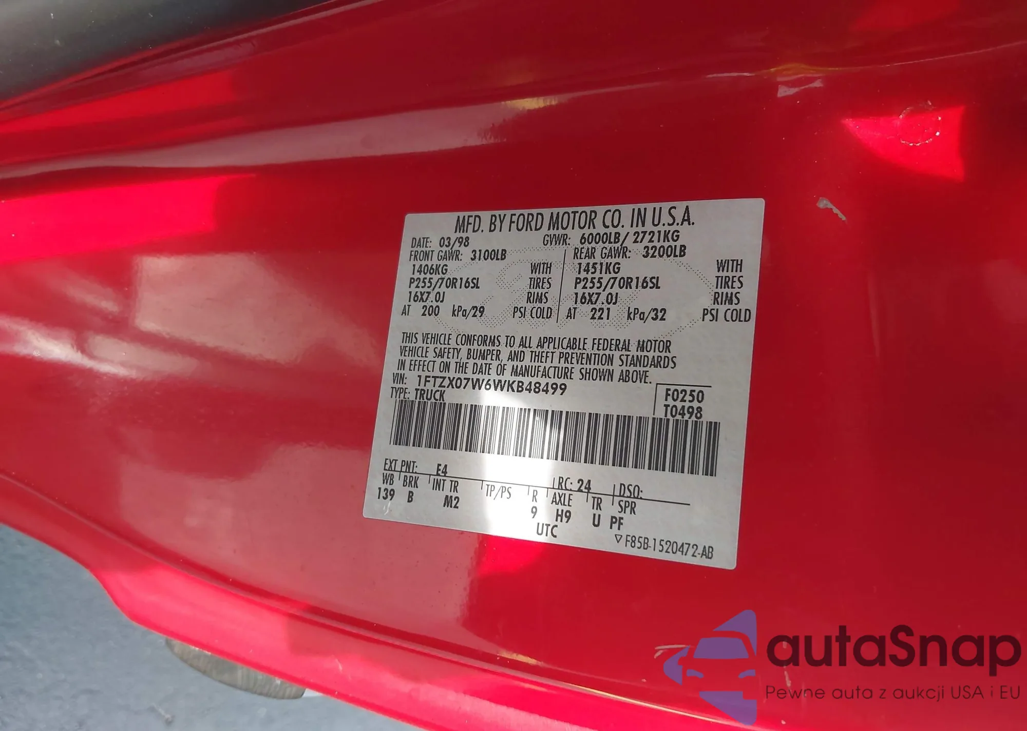 VIN: 1FTZX07W6WKB48499