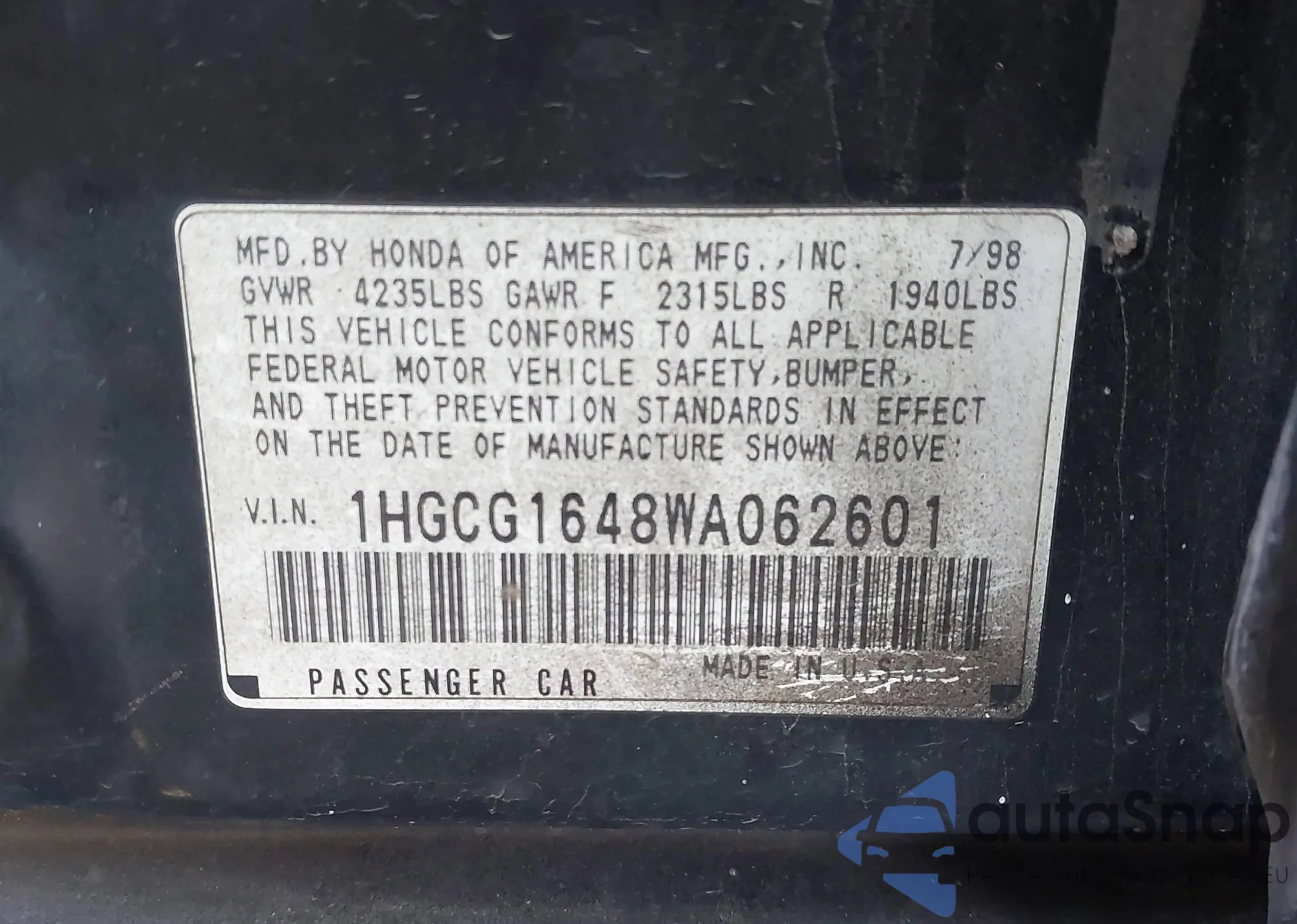 VIN: 1HGCG1648WA062601