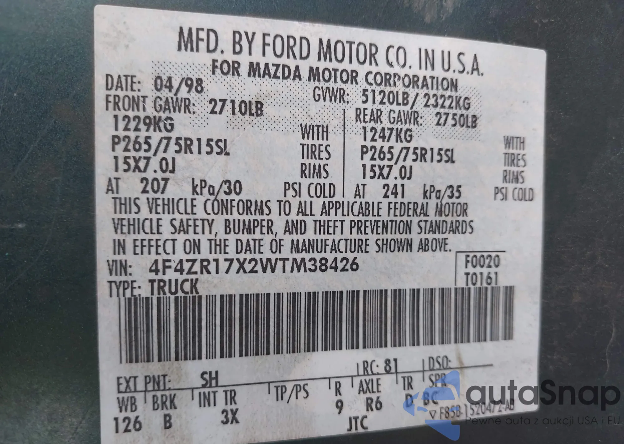 VIN: 4F4ZR17X2WTM38426