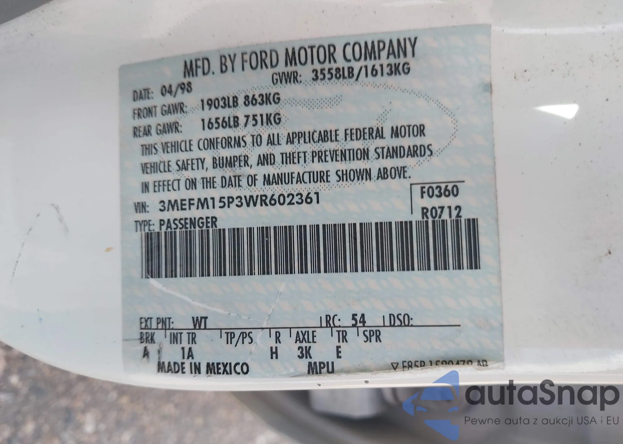 3MEFM15P3WR602361 IAAI