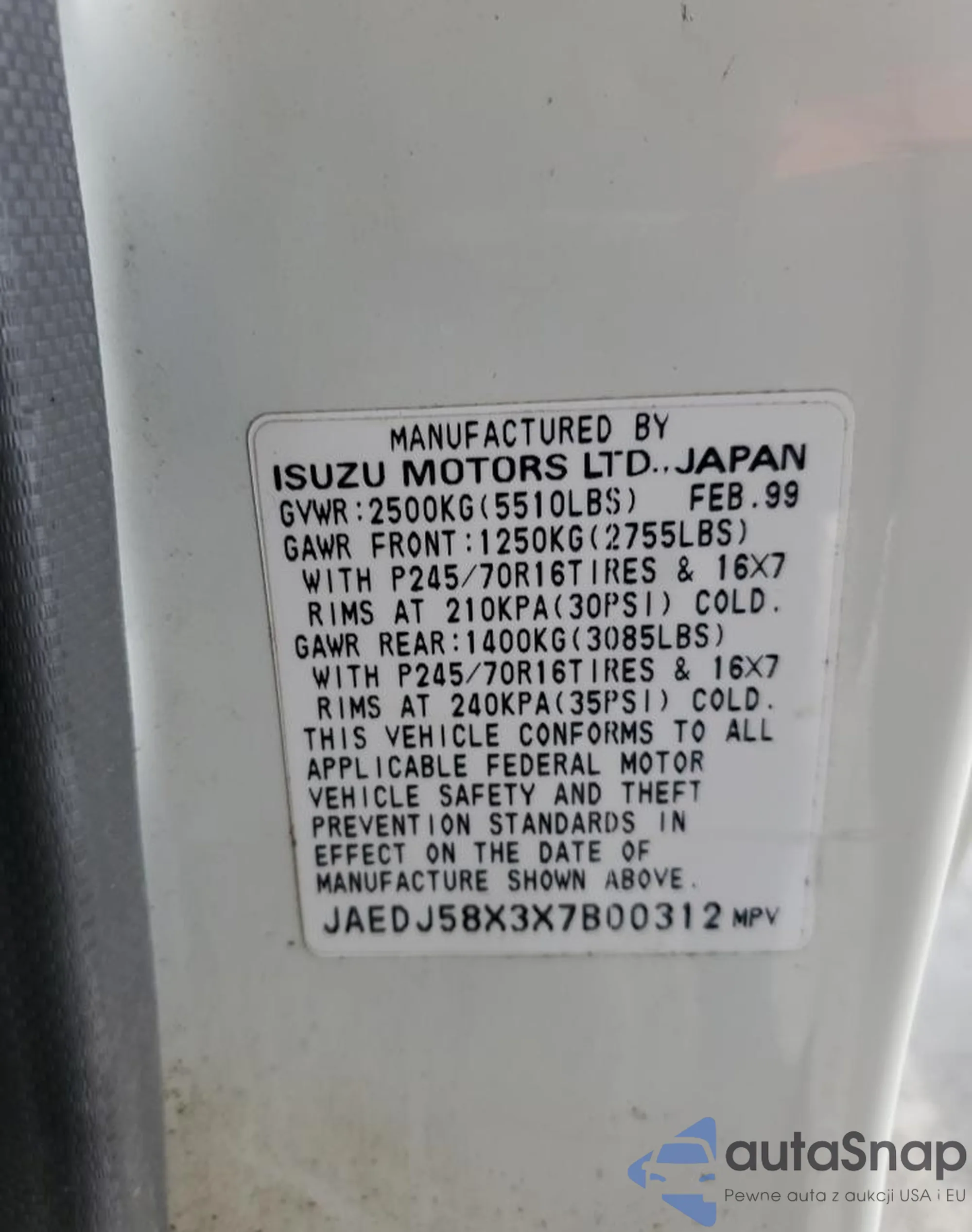 VIN: JAEDJ58X3X7B00312