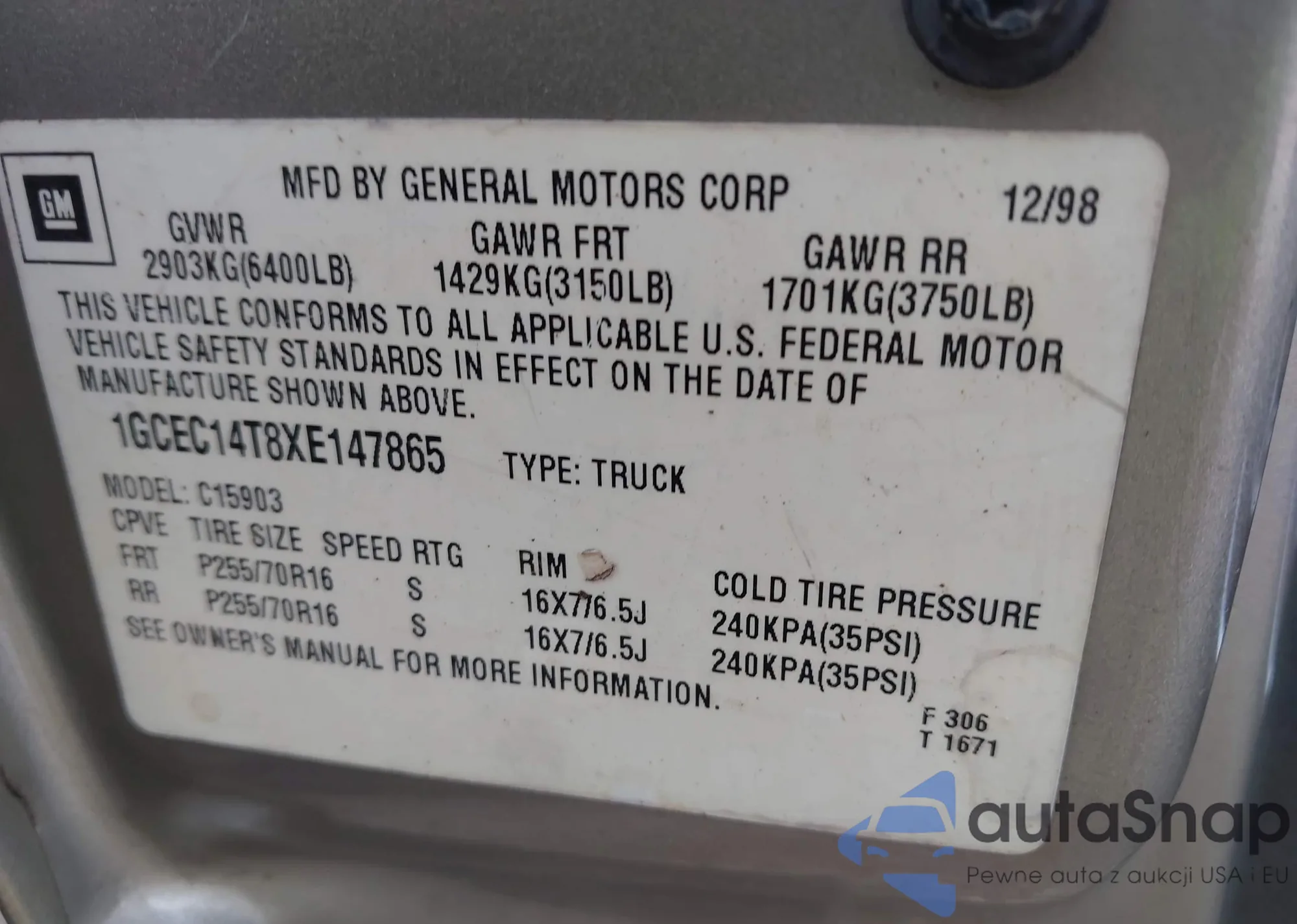 VIN: 1GCEC14T8XE147865