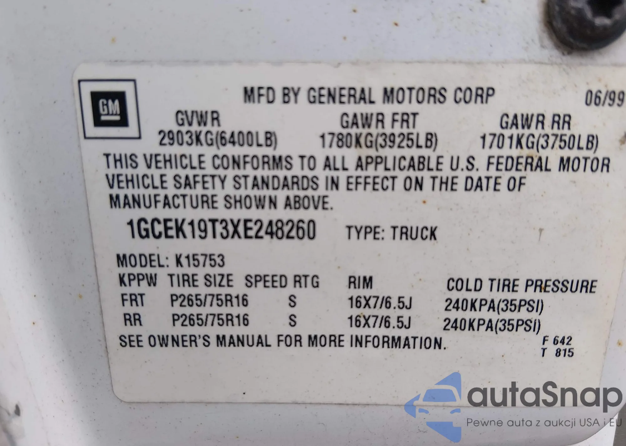 Автомобиль Chevrolet Silverado 1999 (VIN 1GCEK19T3XE248260) продаётся непроверенным продавцом. Рекомендуем проверить отчет Carfax и подтвердить возможность регистрации перед покупкой.