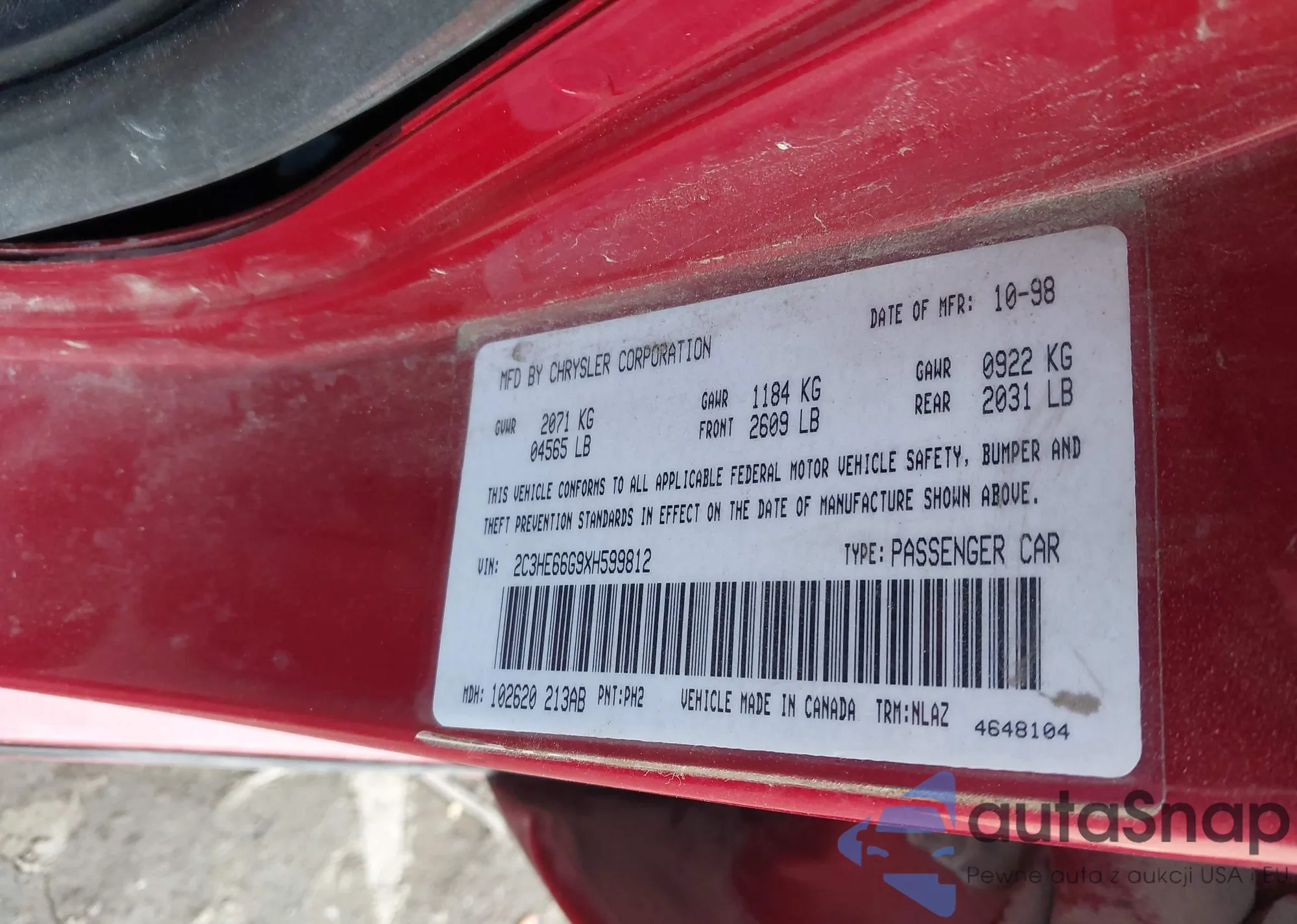 VIN: 2C3HE66G9XH599812