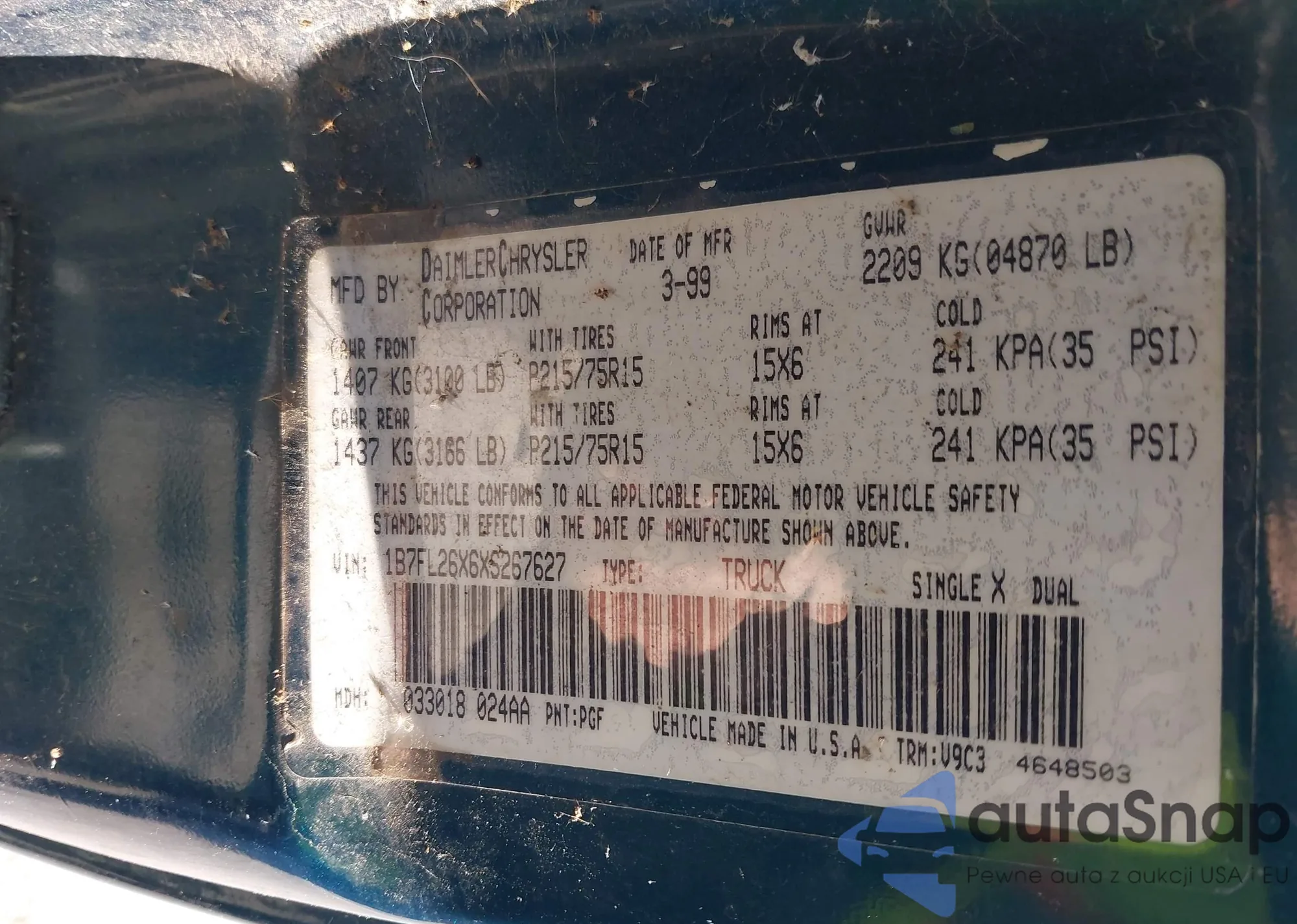 Автомобиль Dodge Dakota 1999 (VIN 1B7FL26X6XS267627) продаётся непроверенным продавцом. Рекомендуем проверить отчет Carfax и подтвердить возможность регистрации перед покупкой.