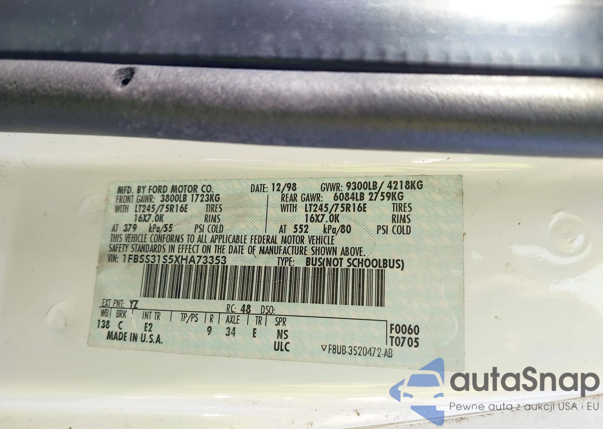 VIN: 1FBSS31S5XHA73353