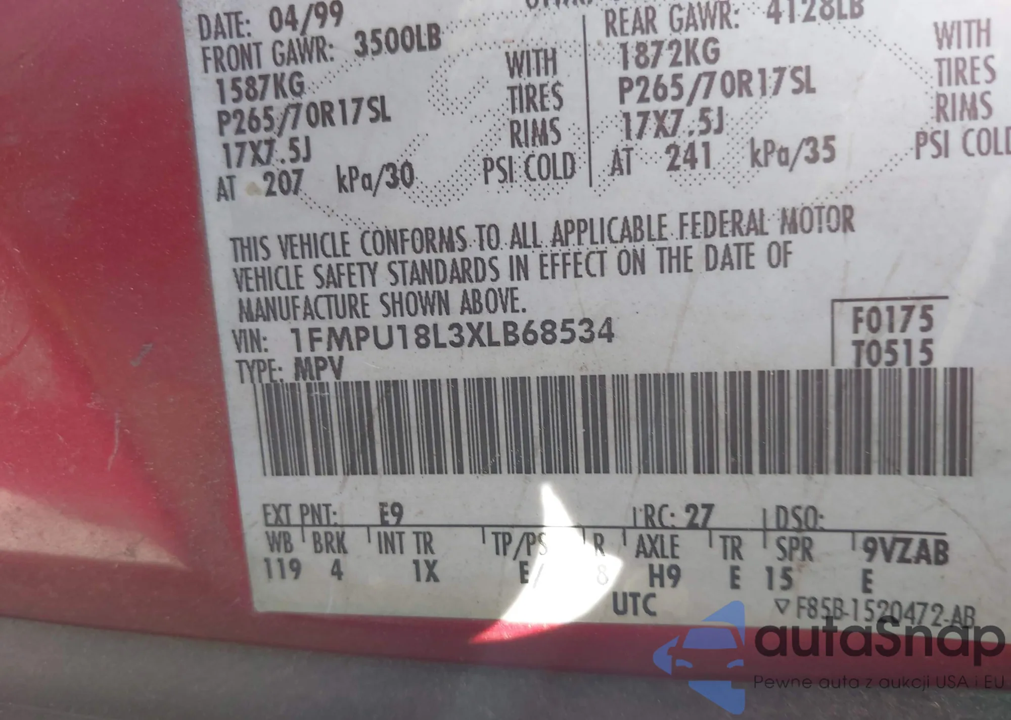 VIN: 1FMPU18L3XLB68534