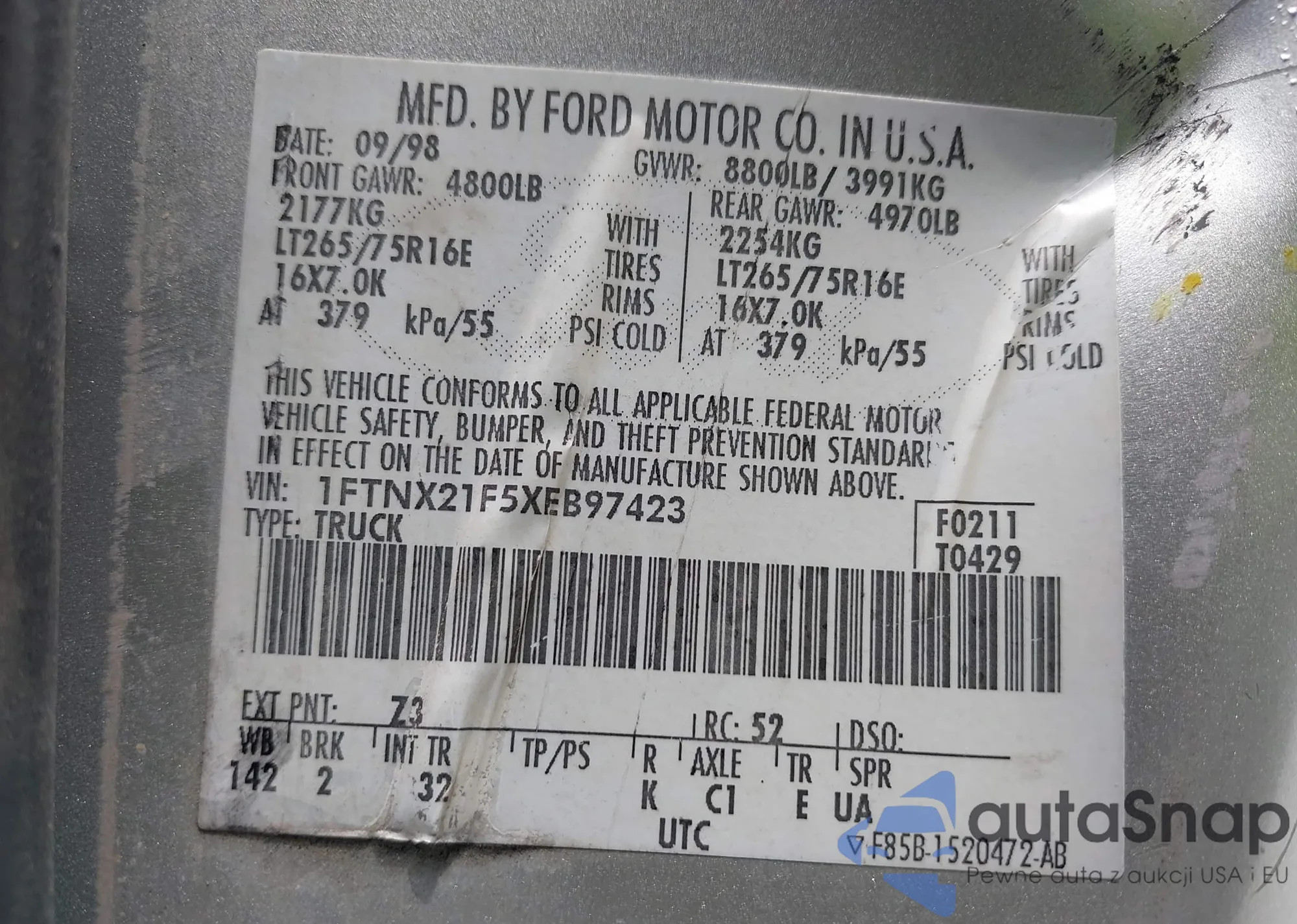 VIN: 1FTNX21F5XEB97423