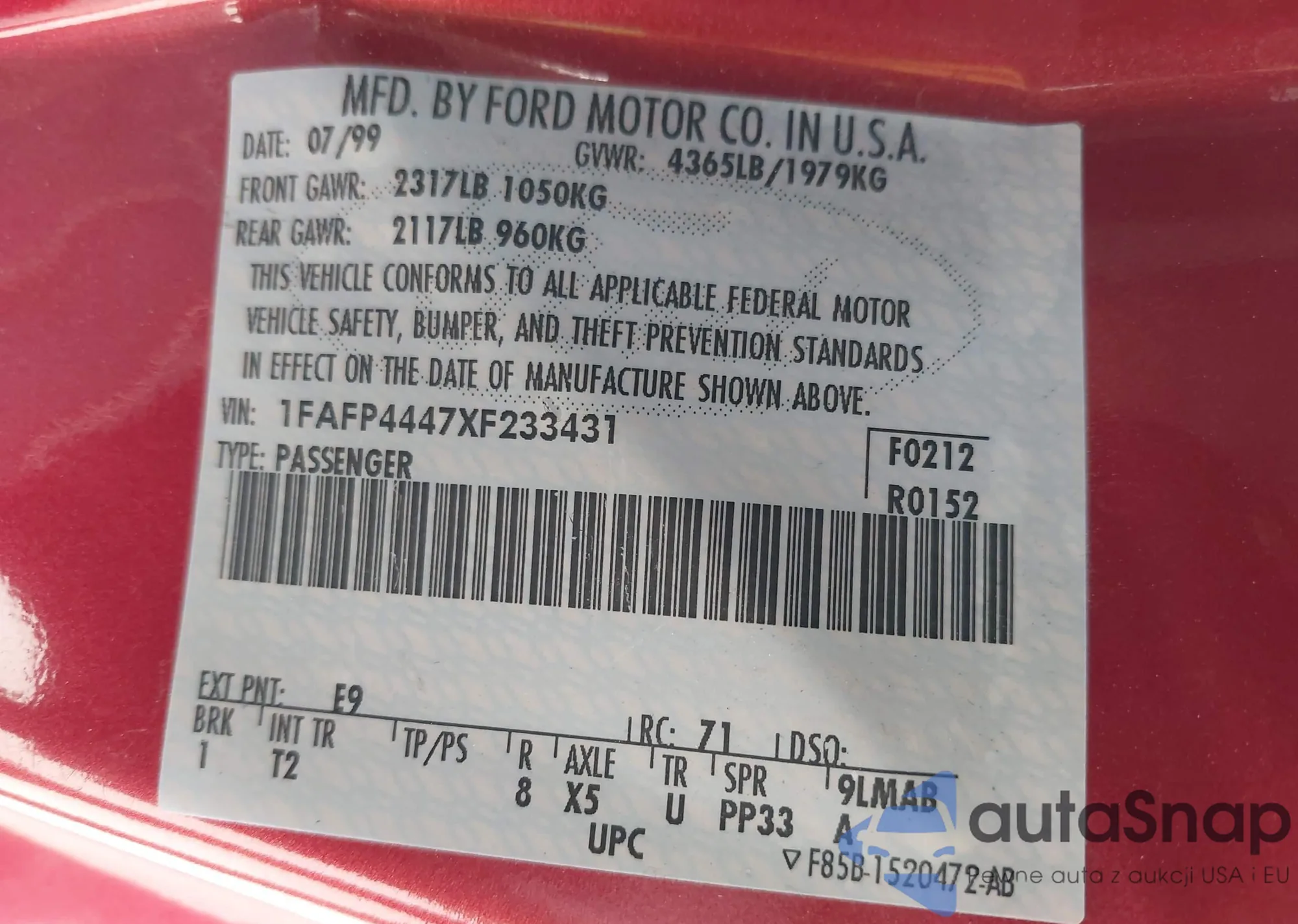 VIN: 1FAFP4447XF233431