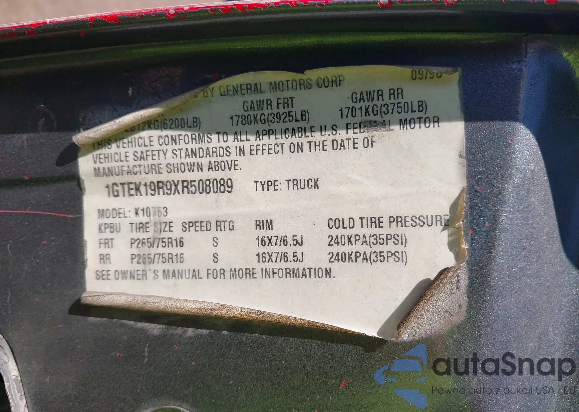 VIN: 1GTEK19R9XR508089