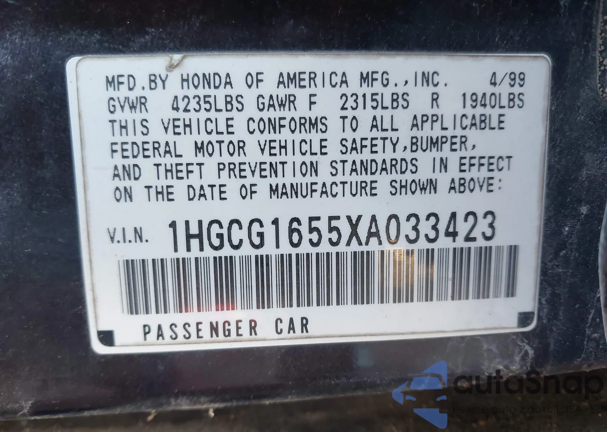VIN: 1HGCG1655XA033423