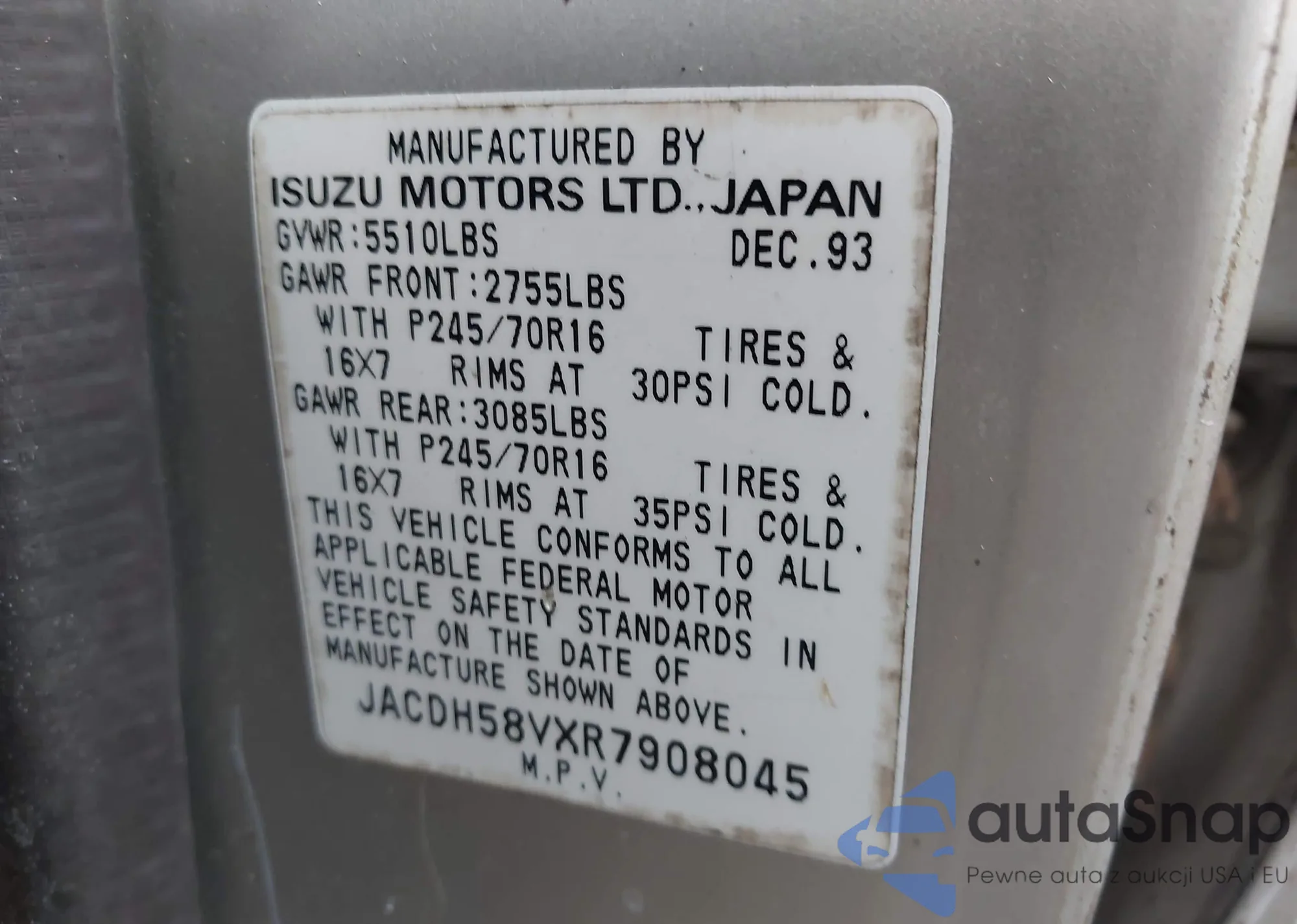 VIN: 1ACDH58VXR7908045