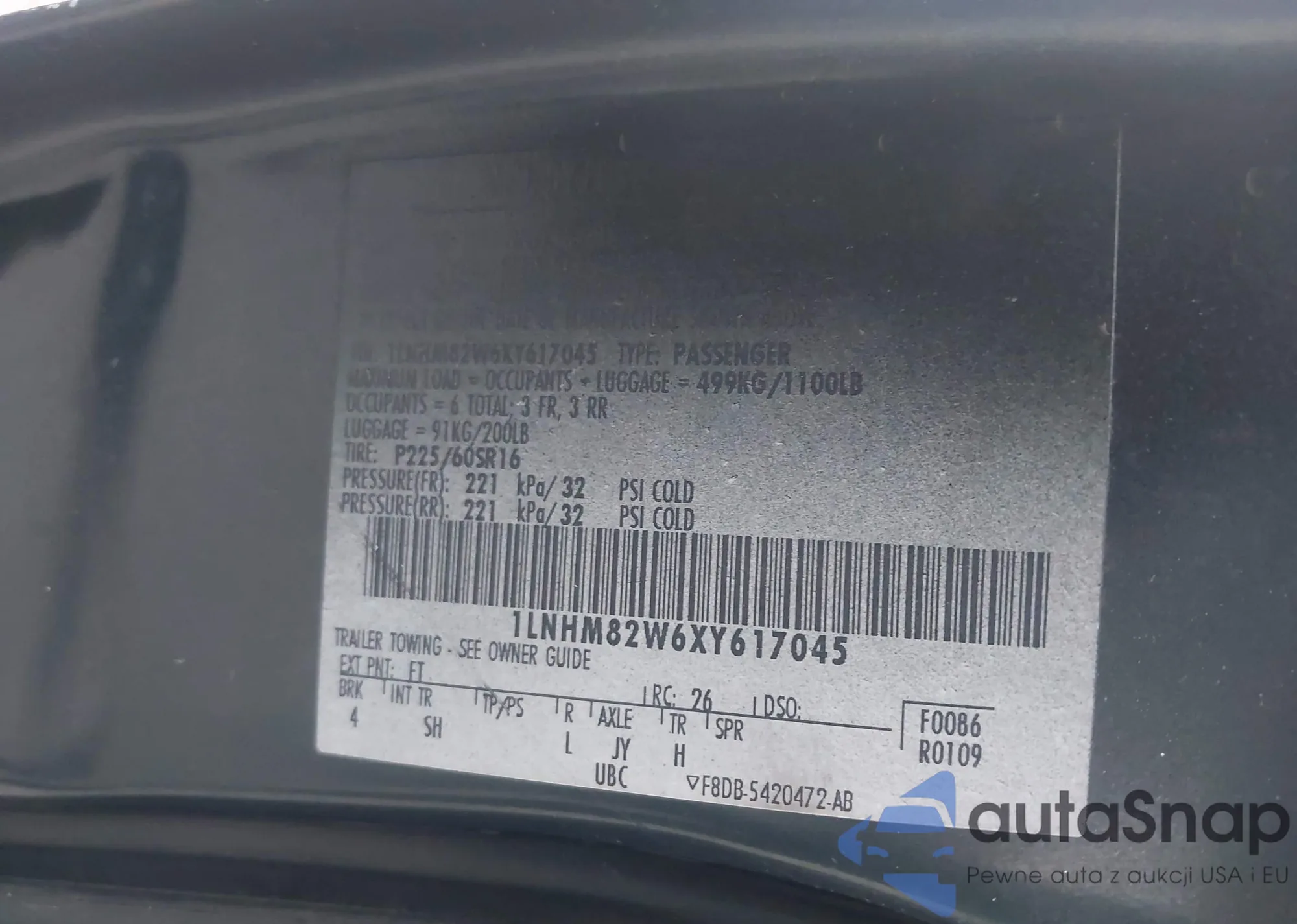 VIN: 1LNHM82W6XY617045
