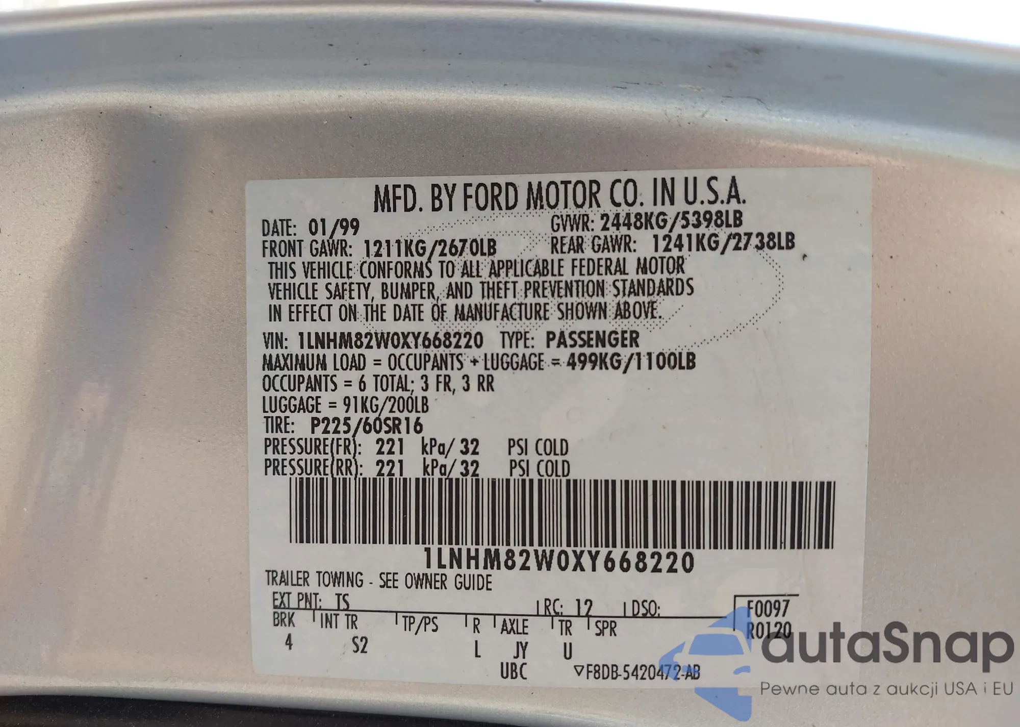 VIN: 1LNHM82W0XY668220