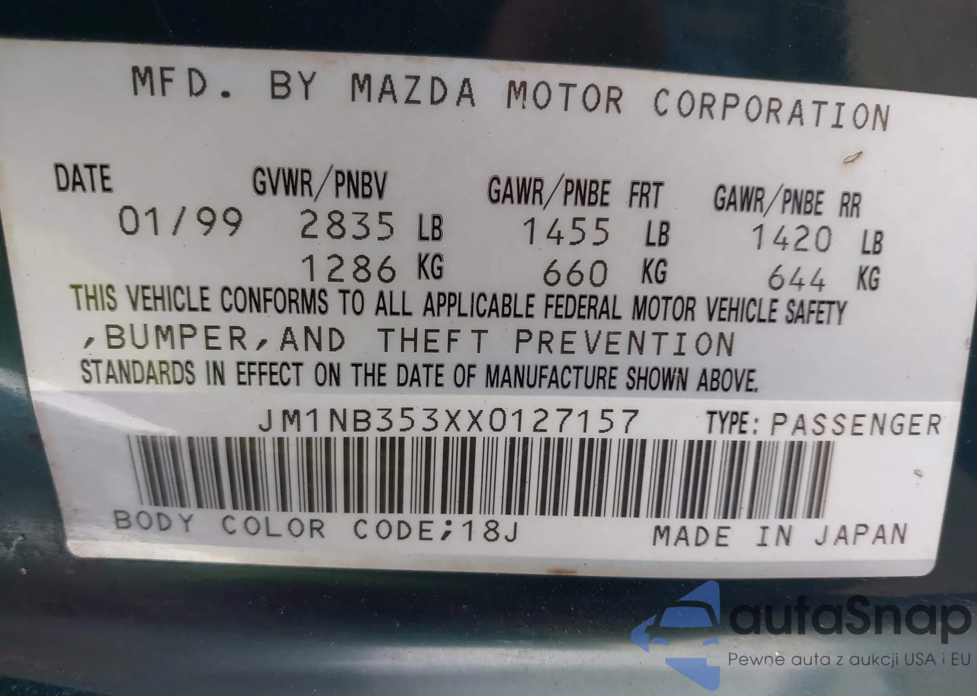 VIN: JM1NB353XX0127157