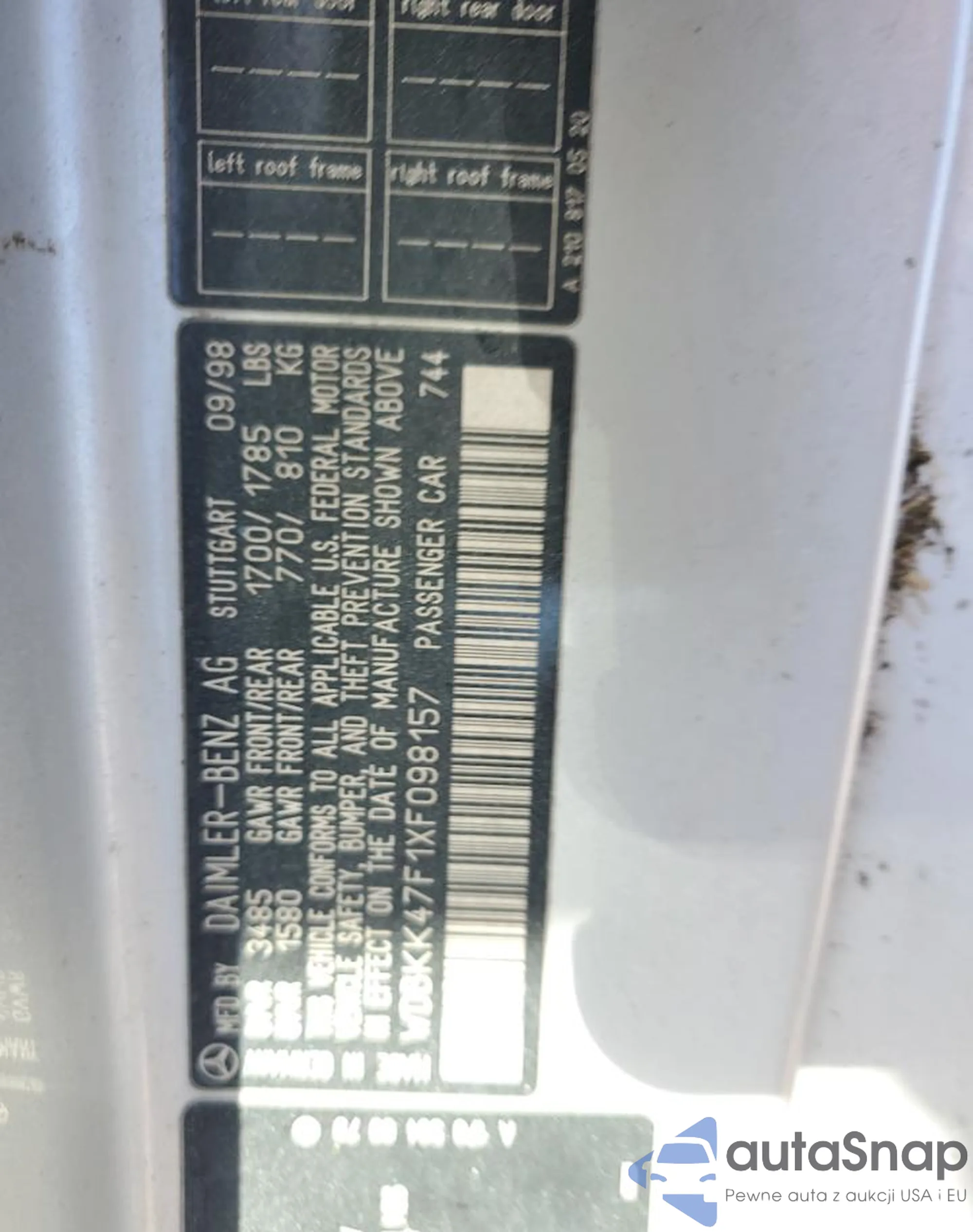 Состояние Salvage Vehicle TitleВозможна регистрация в PL