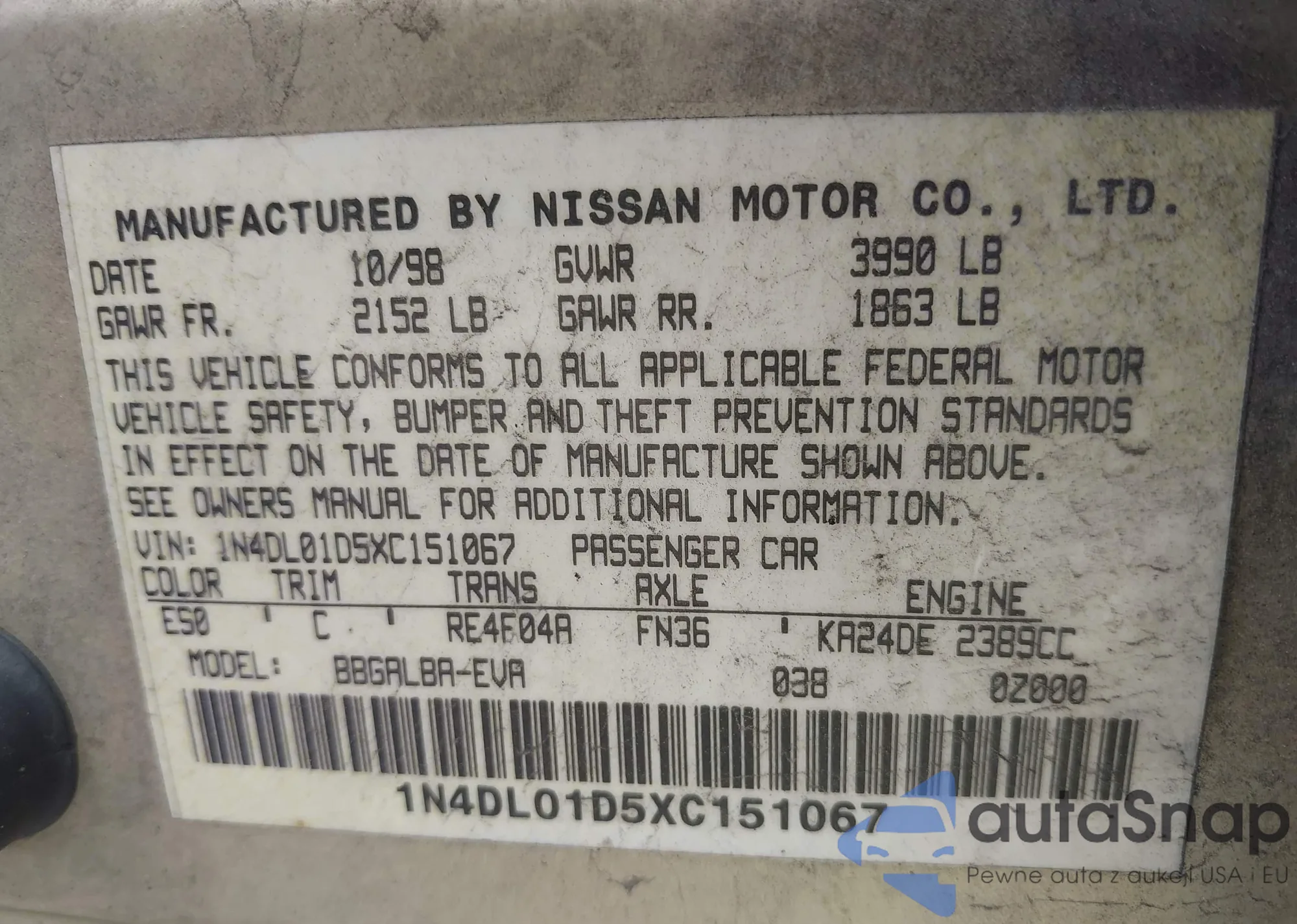 VIN: 1N4DL01D5XC151067